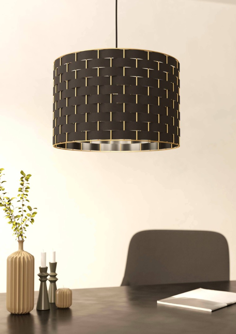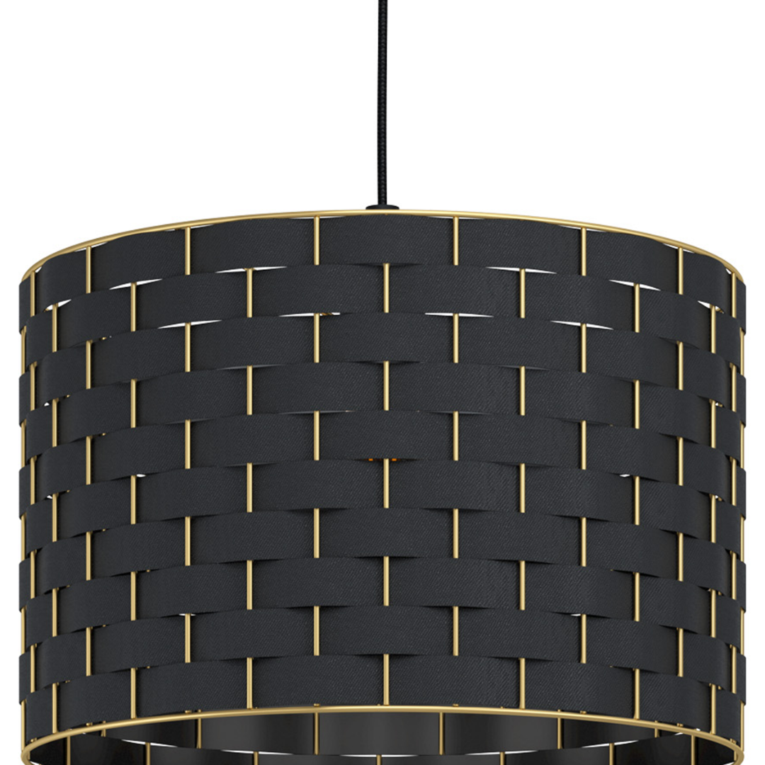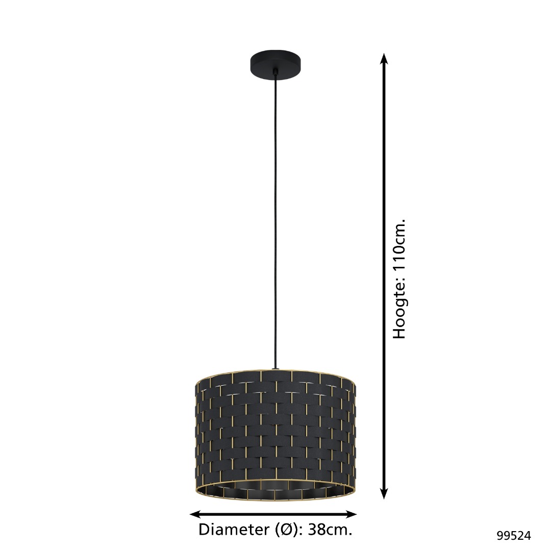 Een mooie hanglamp uit de hanglampen collectie van het merk Eglo. De lamp is gemaakt van staal en textiel in de kleur zwart met geelkoperen accenten. De lamp wordt geleverd exclusief E27 lichtbron geschikt voor max. 40W. Deze lamp kan goed geplaatst worden in de woonkamer of eetkamer, bijvoorbeeld boven een eettafel.