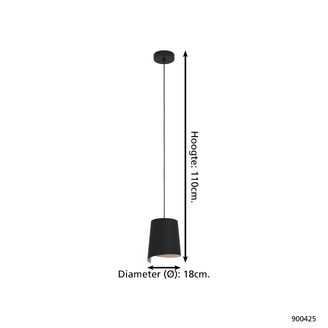 Een hanglamp uit de collectie van Eglo met een mooie uitstraling. De lamp is gemaakt van staal en heeft een zwarte kleur met zandkleurige binnenkant van de kap. Deze lamp is een mooi voorbeeld van een lamp die je in de eetkamer kan hangen boven een eettafel. De lamp wordt exclusief lichtbron geleverd en is geschikt voor max. 1x 40W met E27-fitting.