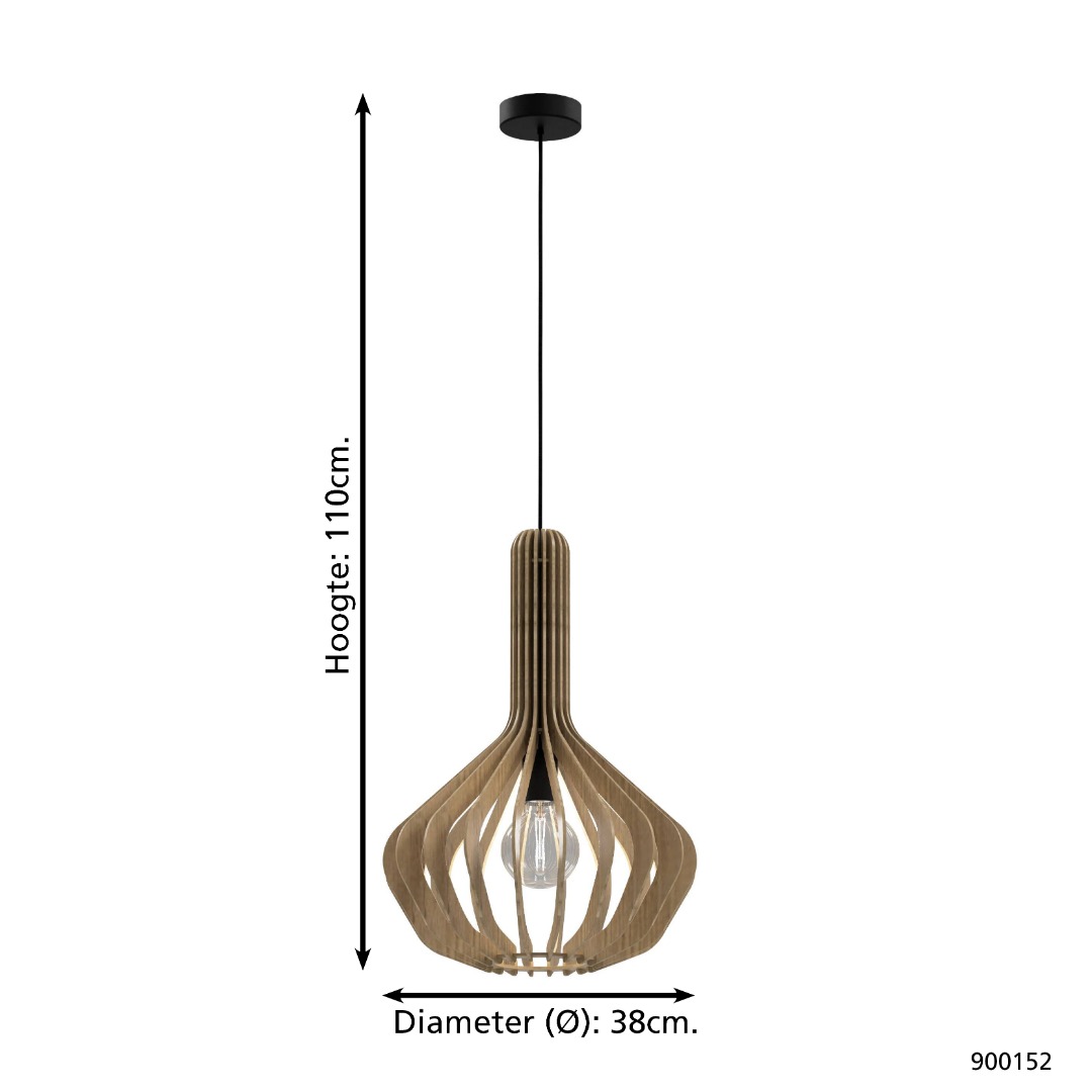 Een mooie hanglamp uit de hanglampen collectie van Eglo. De lamp heeft een moderne uitstraling maar kan ook zeker doorgaan in een landelijk interieur. De lamp wordt exclusief lichtbron geleverd en is geschikt voor een wattage van max. 40W met fittingmaat E27. De hanglamp is gemaakt van staal en hout en heeft een zwarte met ahorn kleur. Deze lamp staat goed in de eetkamer, bijvoorbeeld boven de eettafel.