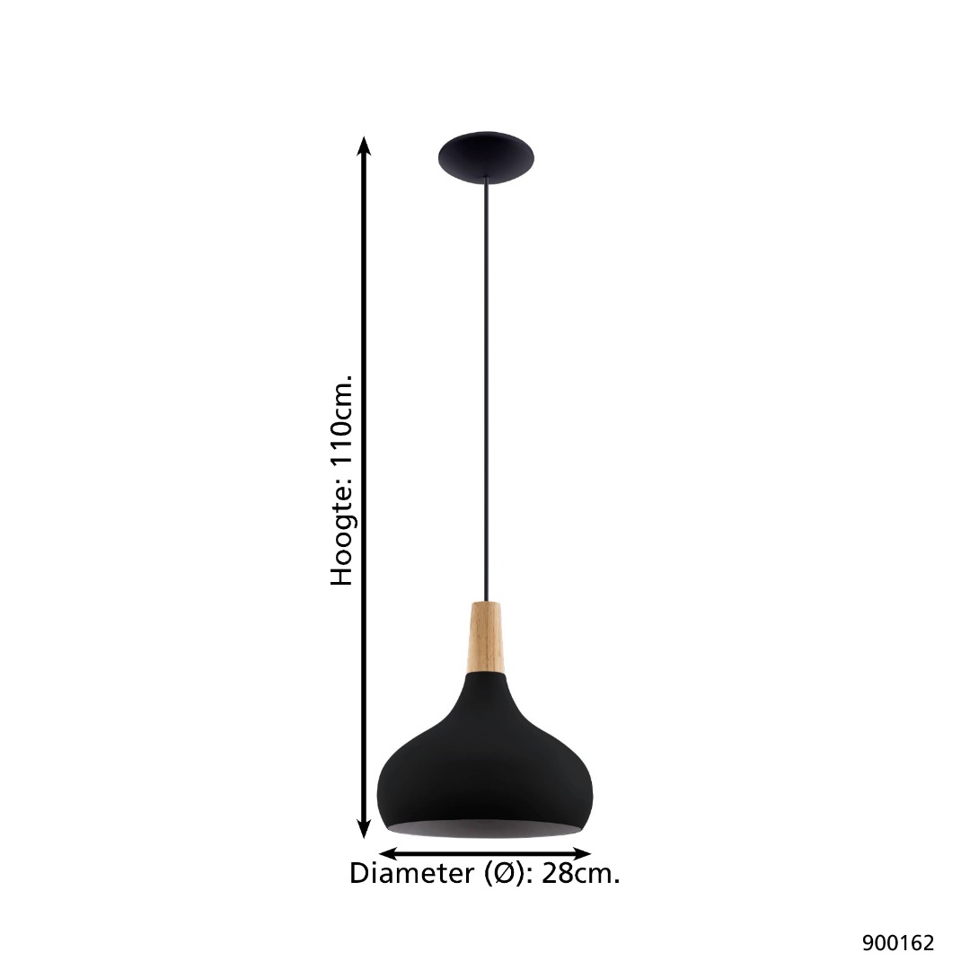 Een mooie hanglamp uit de hanglampen collectie van Eglo. De lamp heeft een moderne en neutrale look. De lamp wordt exclusief lichtbron geleverd en is geschikt voor een wattage van max. 40W met fittingmaat E27. De hanglamp is gemaakt van staal en hout en heeft een zwarte kleur met een bruin accent. Deze lamp staat goed in de eetkamer, bijvoorbeeld boven de eettafel, maar kan ook zeker elders in de woonkamer worden geplaatst.