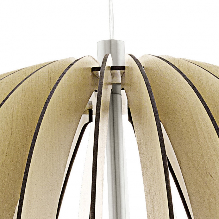 Uit de Lamellaire Armaturen collectie van Eglo is dit de Cossano 94765. De houten lampenkap is uitgevoerd in de kleur ahorn. De stalen behuizing is de kleur nikkel-mat. De lamp wordt exclusief E27-lichtbron met een wattage van 60W geleverd. Deze lamp staat goed in de eetkamer, bijvoorbeeld boven de eettafel.