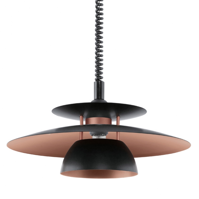 Een design hanglamp uit Eglo´s collectie. De lamp heeft een zwarte behuizing van kunststof en staal. De kap van de Brenda is gemaakt van staal en is uitgevoerd in de kleuren zwart en koper. De lamp heeft een E27-fitting met een maximaal wattage van 60W en wordt zonder lichtbron geleverd. Deze lamp staat goed in de eetkamer, bijvoorbeeld boven de eettafel.