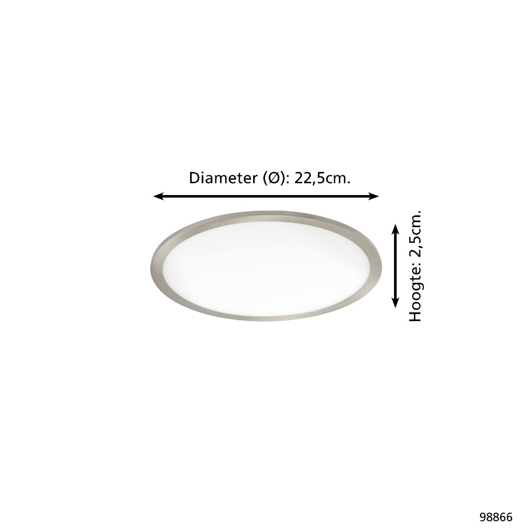 De Fueva flex Inbouwlamp komt uit de Inbouwspots & Armaturen collectie van het merk Eglo. Deze inbouwlamp is gemaakt van aluminium en kunststof en heeft de kleur nikkel-mat en wit. De inbouwlamp wordt geleverd inclusief ingebouwde LED lichtbron met een wattage van 22W. De inbouwlamp kan goed geplaatst worden in verschillende soorten interieur en kan ook goed gebruikt worden in bijvoorbeeld kantoorruimte. De lamp straalt warm wit licht uit.