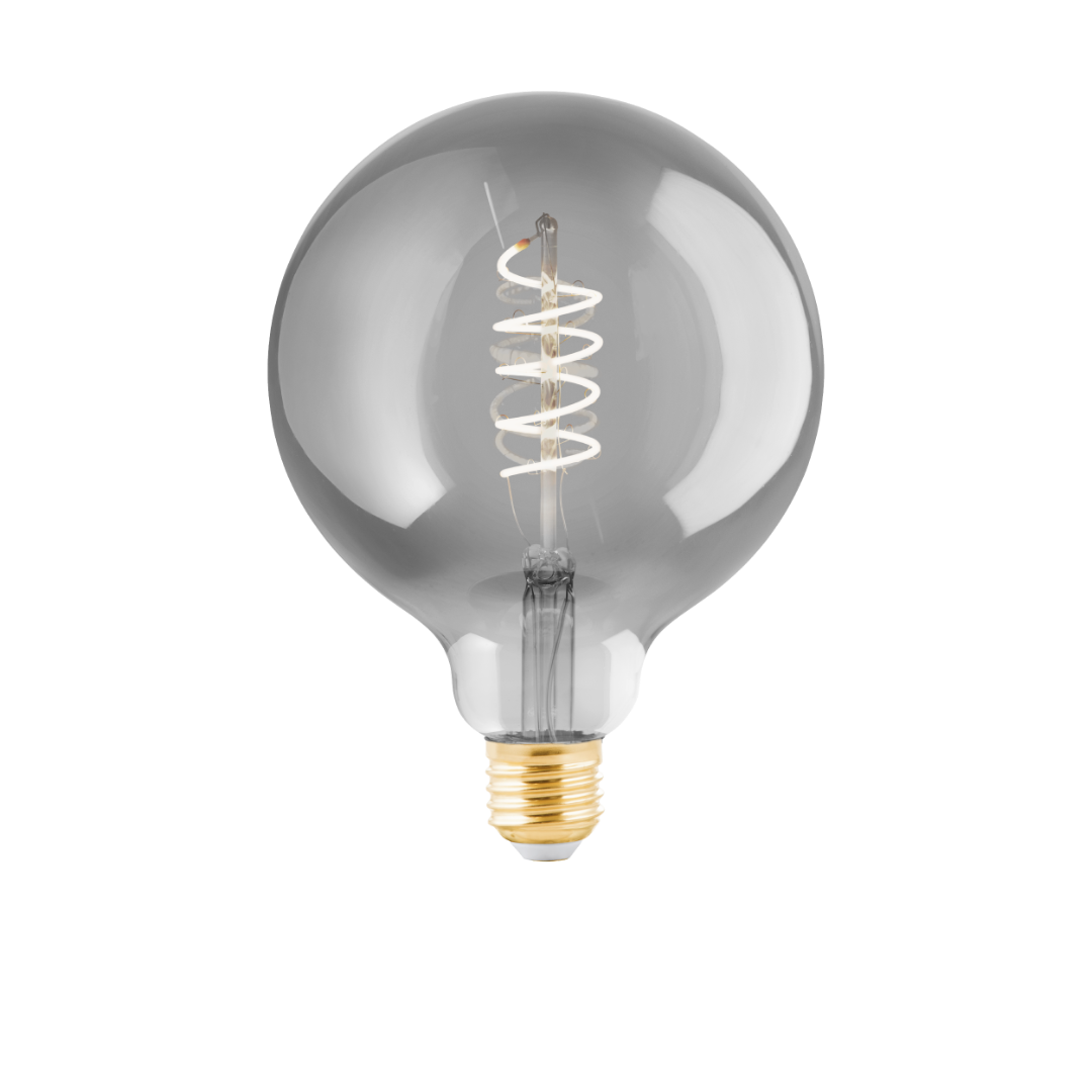 Een prachtige LED lamp van Eglo met een globe vorm die goed toepasbaar is in een armatuur met E27 fitting. De lamp heeft een zilver grijze kleur en kan gedimd worden om de perfecte sfeer te creëren.
