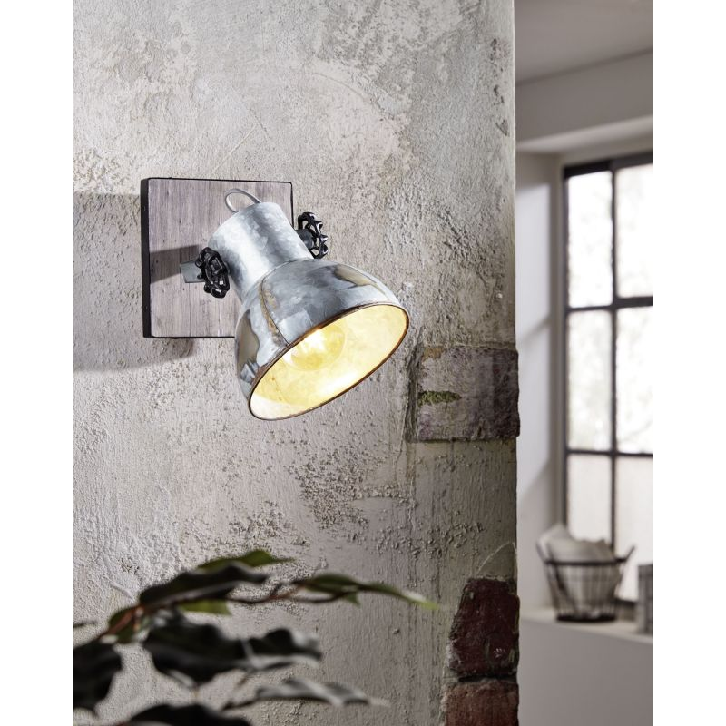 Deze opbouwspot komt uit de Opbouwspots collectie van het merk Eglo. Deze opbouwspot is gemaakt van staal en hout en heeft een vintage uitstraling vanwege de kleuren bruin, zwart en grijs. De lamp wordt exclusief E27 lichtbron geleverd en is geschikt voor een maximaal wattage van 1x 40W. De lamp is geschikt voor verschillende woonruimten zoals de hal, slaapkamer of woonkamer.