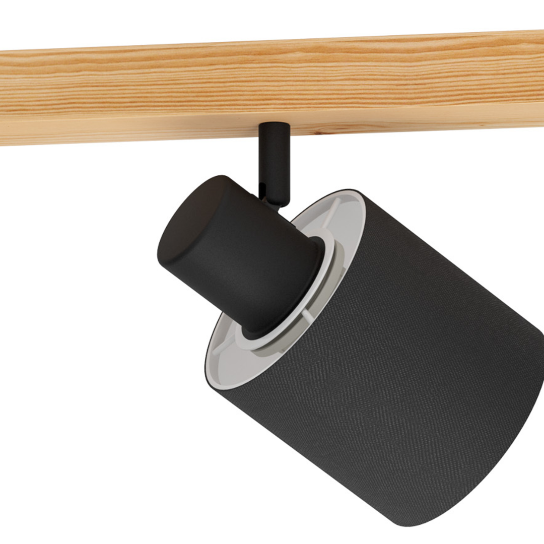 Een opbouwspot uit de nieuwe spots collectie van Eglo die zowel onder een moderne als landelijke stijl kan vallen. De lamp is gemaakt van hout, staal en textiel en heeft een bruine kleur met zwarte kapjes en deze zijn wit aan de binnenkant. Deze lamp staat goed in verschillende ruimtes zoals de hal, slaapkamer of woonkamer. Door de chique monotone kleur past de lamp goed in ieder interieur. De lamp wordt geleverd exclusief lichtbronnen met E27 fittingen en geschikt voor max. 3x 10W.