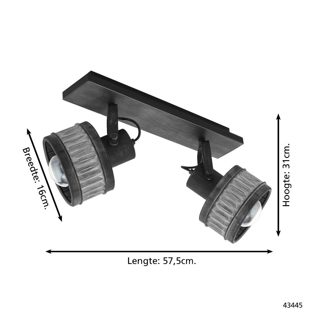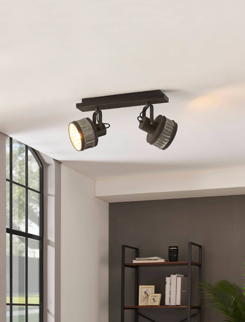 Een opbouwspot uit de nieuwe spots collectie van Eglo die een industriële uitstraling geeft door de grijs-patina en zwarte kleur. De lamp is gemaakt van staal. Deze lamp staat goed in verschillende ruimtes zoals de hal, slaapkamer of woonkamer. Door de chique monotone kleur past de lamp goed in ieder interieur. De lamp wordt geleverd exclusief lichtbronnen met E27 fittingen en is geschikt voor max. 2x 28W.