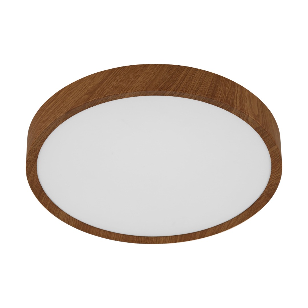 Een design plafondlamp uit de wand- en plafondlampen collectie van het merk Eglo. De lamp is gemaakt van kunststof en staal in de kleur houtbruin met witte kap. De lamp heeft een ingebouwde LED- lichtbron die een wattage van 16,8W heeft en warm wit licht uitstraalt. Deze lamp kan goed geplaatst worden in de hal, woonkamer of slaapkamer.