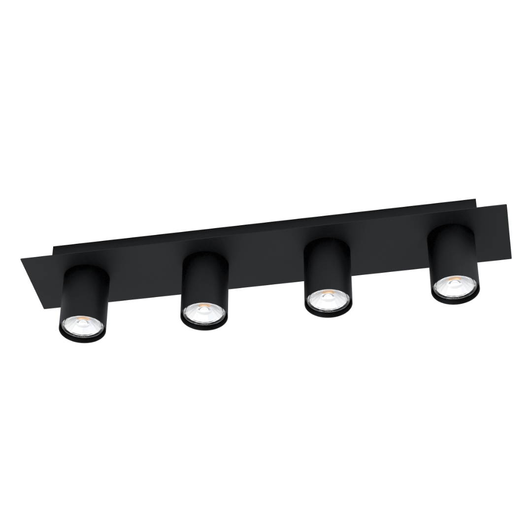 Een design plafondlamp uit de plafondlampen collectie van het merk Eglo. De lamp is gemaakt van staal in de kleur zwart. De lamp wordt geleverd inclusief LED lichtbronnen met een wattage van 4x 4,5W. Deze lamp kan goed geplaatst worden in de hal, woonkamer of slaapkamer. Door de chique éénkleurige uitstraling kan deze lamp in veel soorten interieur mooi tot zijn recht komen.