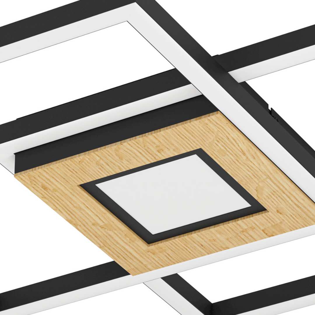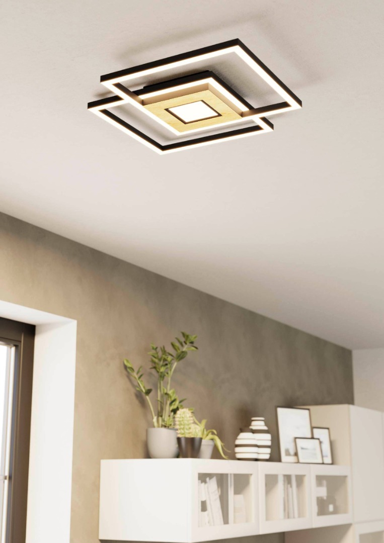 Een design plafondlamp uit de plafondlampen collectie van het merk Eglo. De lamp is gemaakt van staal, hout en aluminium in de kleuren zwart, bruin en wit. De lamp wordt geleverd inclusief 3 LED lichtbronnen met een wattage van 2x 17W en 1x 4,2W. Deze lamp kan goed geplaatst worden in de hal, woonkamer of slaapkamer. Door de chique uitstraling kan deze lamp in veel soorten interieur mooi tot zijn recht komen.