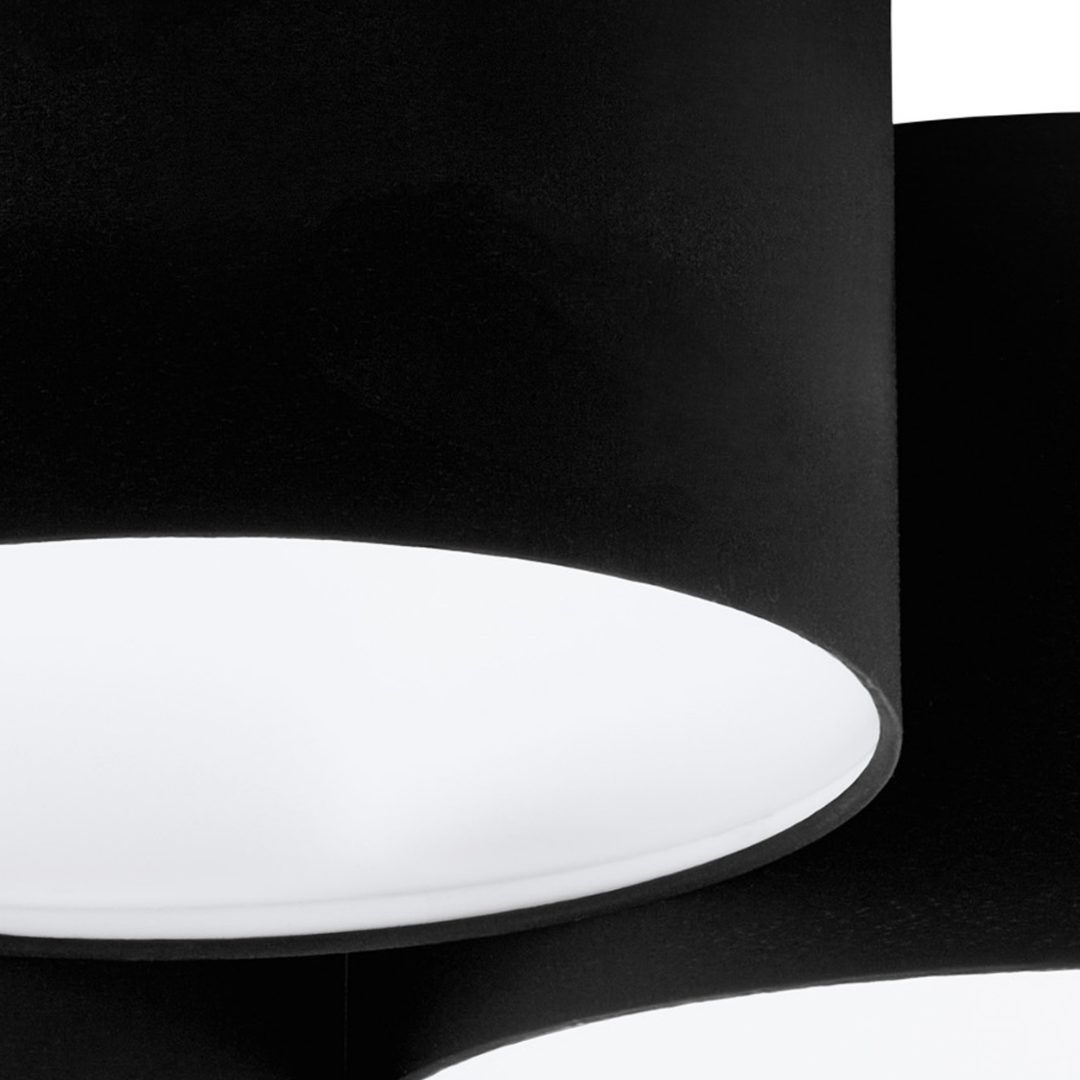 Een plafondlamp met bijzondere uitstraling uit de collectie van Eglo. Het is een lamp gemaakt van staal en textiel en heeft een zwarte kleur met een witte binnenkant. De lamp wordt exclusief lichtbronnen geleverd en is geschikt voor een wattage van max. 3x 60W. De plafondlamp is een goed voorbeeld van een lamp die mooi hangt in de slaapkamer of in de woonkamer. Deze lamp heeft een unieke uitstraling en is een echte blikvanger in uw interieur.