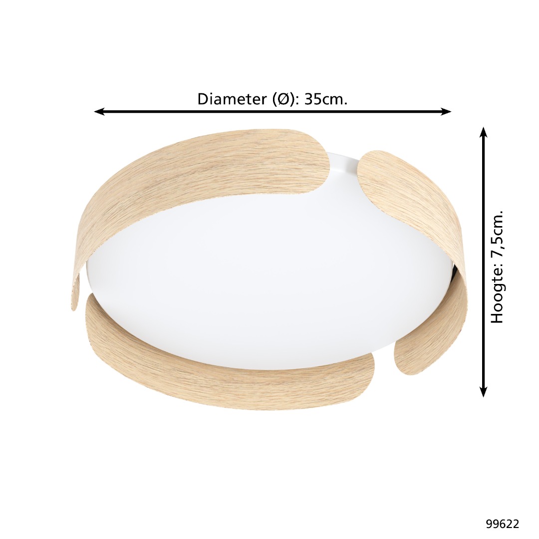 Een design plafondlamp uit de plafondlampen collectie van het merk Eglo. De lamp is gemaakt van staal en kunststof in de kleur wit en licht bruin. De lamp wordt geleverd inclusief LED lichtbron met een wattage van 24W. Deze lamp kan goed geplaatst worden in de hal, woonkamer of slaapkamer. Door de hout-achtige kleur kan deze lamp ook zeer goed in een landelijk interieur worden toegepast.