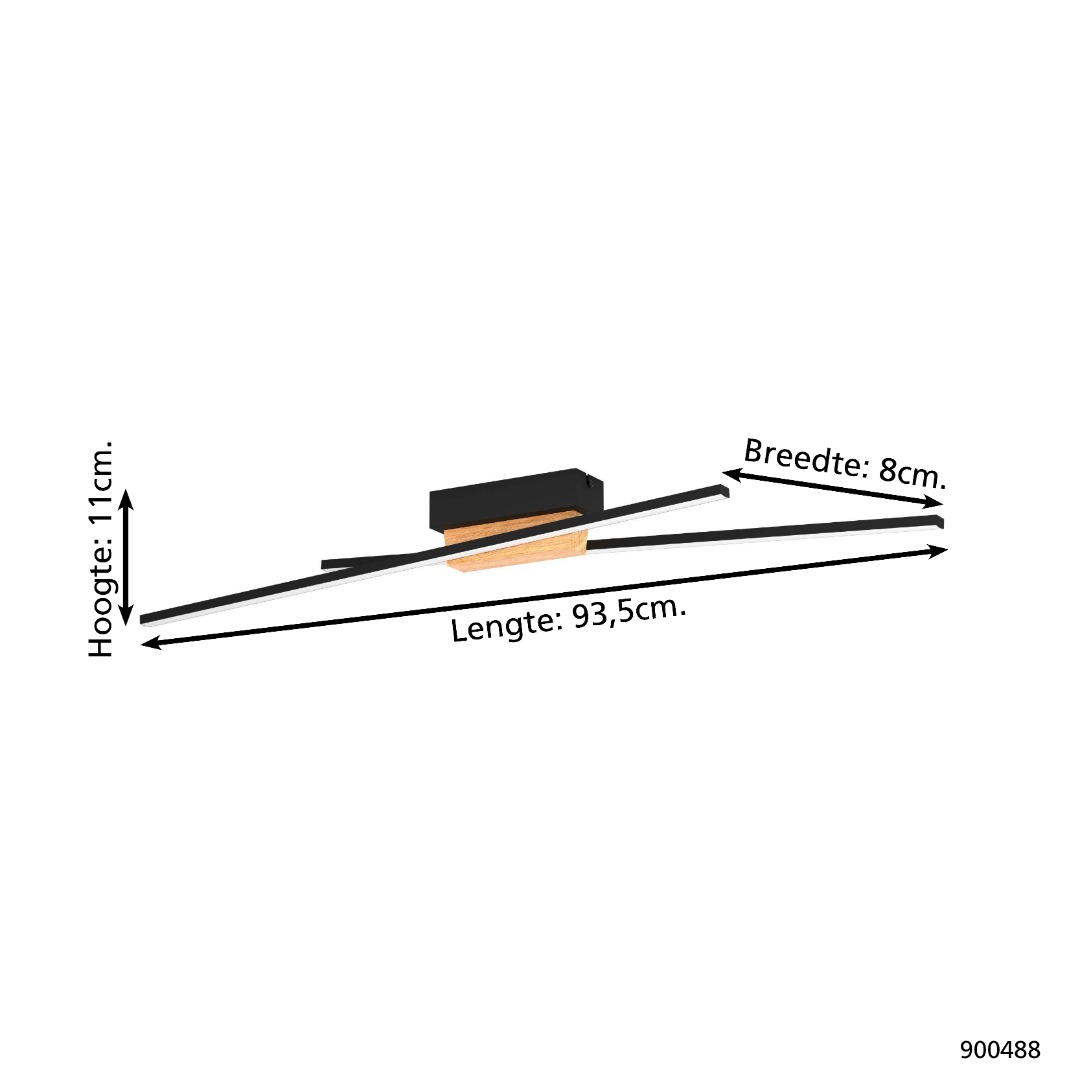 Een plafondlamp uit de collectie van Eglo met een moderne uitstraling. De lamp is gemaakt van aluminium,  hout, staal en kunststof in de kleuren bruin, zwart en wit. Deze lamp is een mooi voorbeeld van een lamp die goed staat in de hal, slaapkamer of woonkamer. De lamp wordt inclusief LED lichtbronnen geleverd met een wattage van 2x 13W.