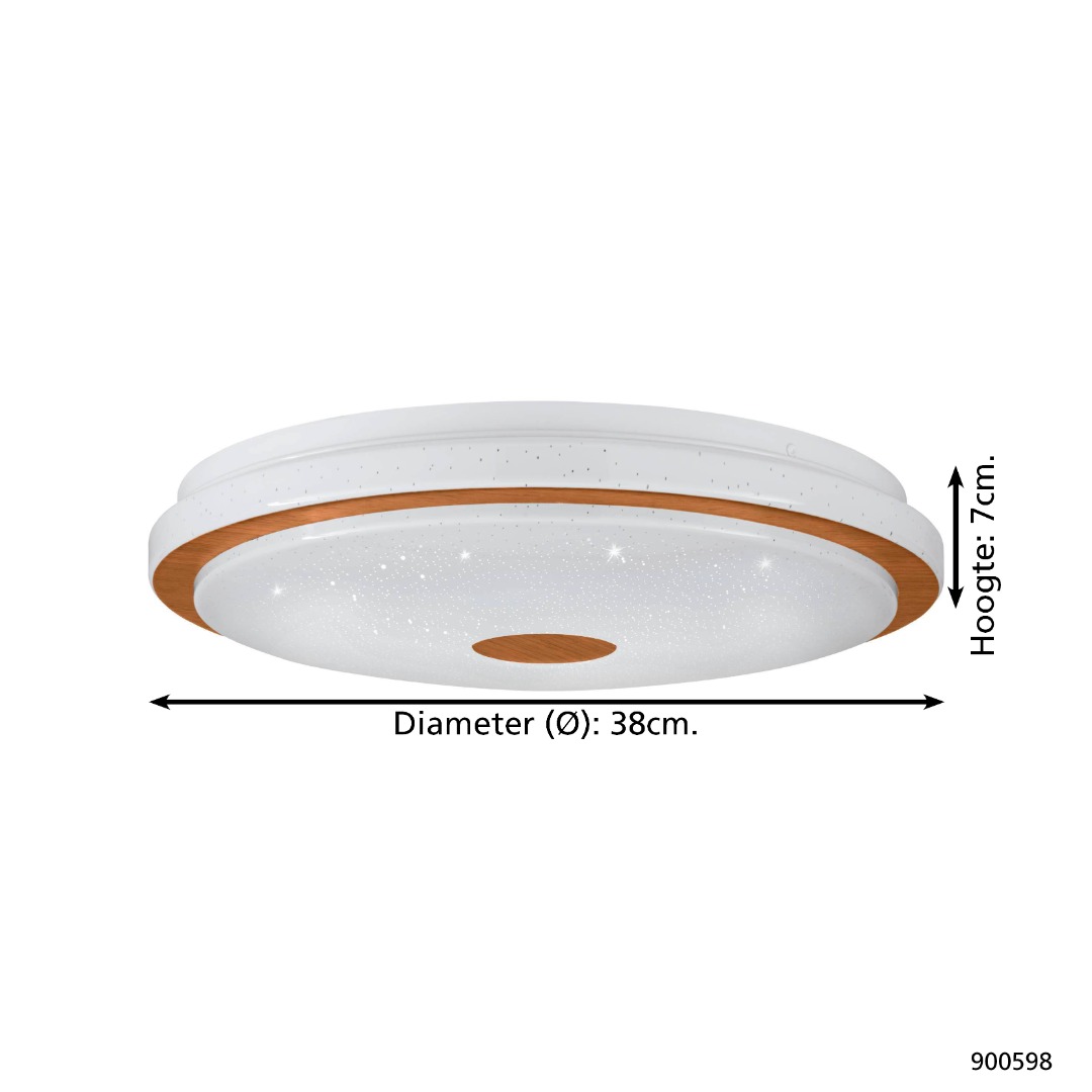 Een plafondlamp uit de collectie van Eglo met een moderne uitstraling. De lamp is gemaakt van hout, staal en kunststof in een bruin met witte kleur. Deze lamp kan toegepast worden in verschillende delen van het interieur zoals hal, slaapkamer of woonkamer. De lamp wordt inclusief LED lichtbron geleverd die een wattage heeft van 24W.