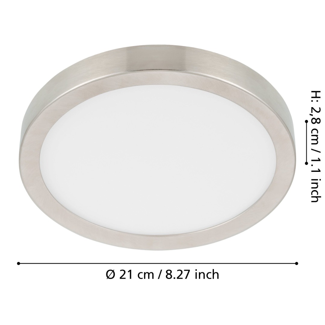 Een plafondlamp uit de collectie van Eglo met een moderne look die goed geplaatst kan worden in ieder interieur. De lamp is gemaakt van staal en kunststof en heeft een nikkel-matte kleur met witte kap. De lamp heeft een ingebouwde LED lichtbron die een wattage heeft van 17W. De lamp kan goed geplaatst worden in verschillende soorten ruimtes zoals hal, slaapkamer, woonkamer of kantoor.