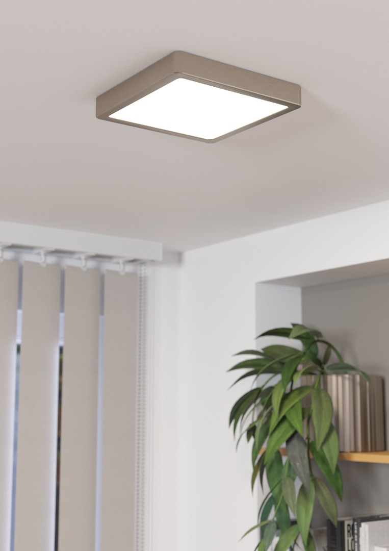 Een plafondlamp uit de collectie van Eglo met een moderne look die goed geplaatst kan worden in ieder interieur. De lamp is gemaakt van staal en kunststof en heeft een nikkel-matte kleur met witte kap. De lamp heeft een ingebouwde LED lichtbron die een wattage heeft van 17W. De lamp kan goed geplaatst worden in verschillende soorten ruimtes zoals hal, slaapkamer, woonkamer of kantoor.