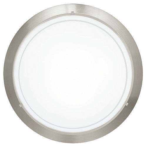 Een ronde plafondlamp uit de plafonnièrecollectie van Eglo. De behuizing van nikkel-mat staal in combinatie met de strakke lijnen van de Planet 1 83162 geven deze plafonnière een moderne uitstraling. Dit wordt versterkt door het contrast met de witte kap van gelakt glas. Deze plafondlamp heeft een E27-fitting met een maximaal wattage van 60W. Deze lamp staat bijvoorbeeld goed in de woonkamer of slaapkamer en kan tevens aan de wand gemonteerd worden.