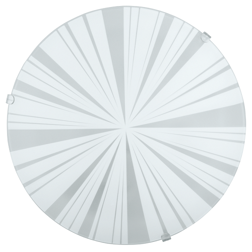 Een moderne plafonnière uit de plafondlampencollectie van Eglo. De ronde behuizing heeft een diameter van 25 cm en kan ook aan de muur worden bevestigd. De satijn glazen kap van de Mars 1 89239 heeft een stralen motief. Deze plafondlamp heeft een E27-fitting met een maximaal wattage van 60W. Deze plafonnière van Eglo wordt exclusief lichtbron geleverd. Deze lamp staat bijvoorbeeld goed in de woonkamer, slaapkamer of hal.