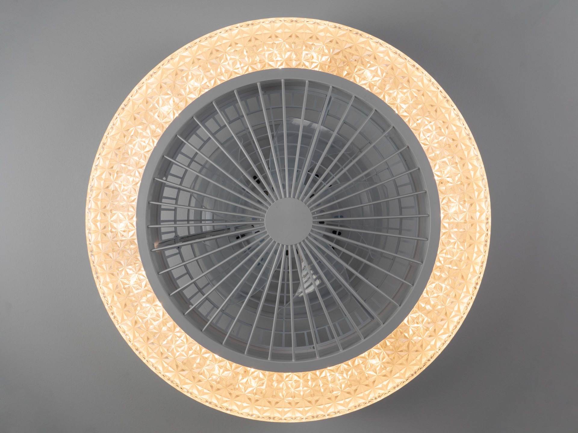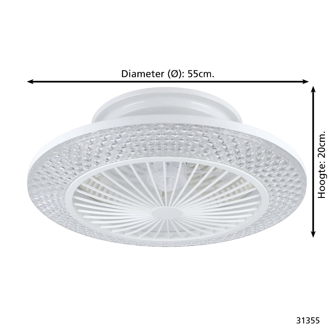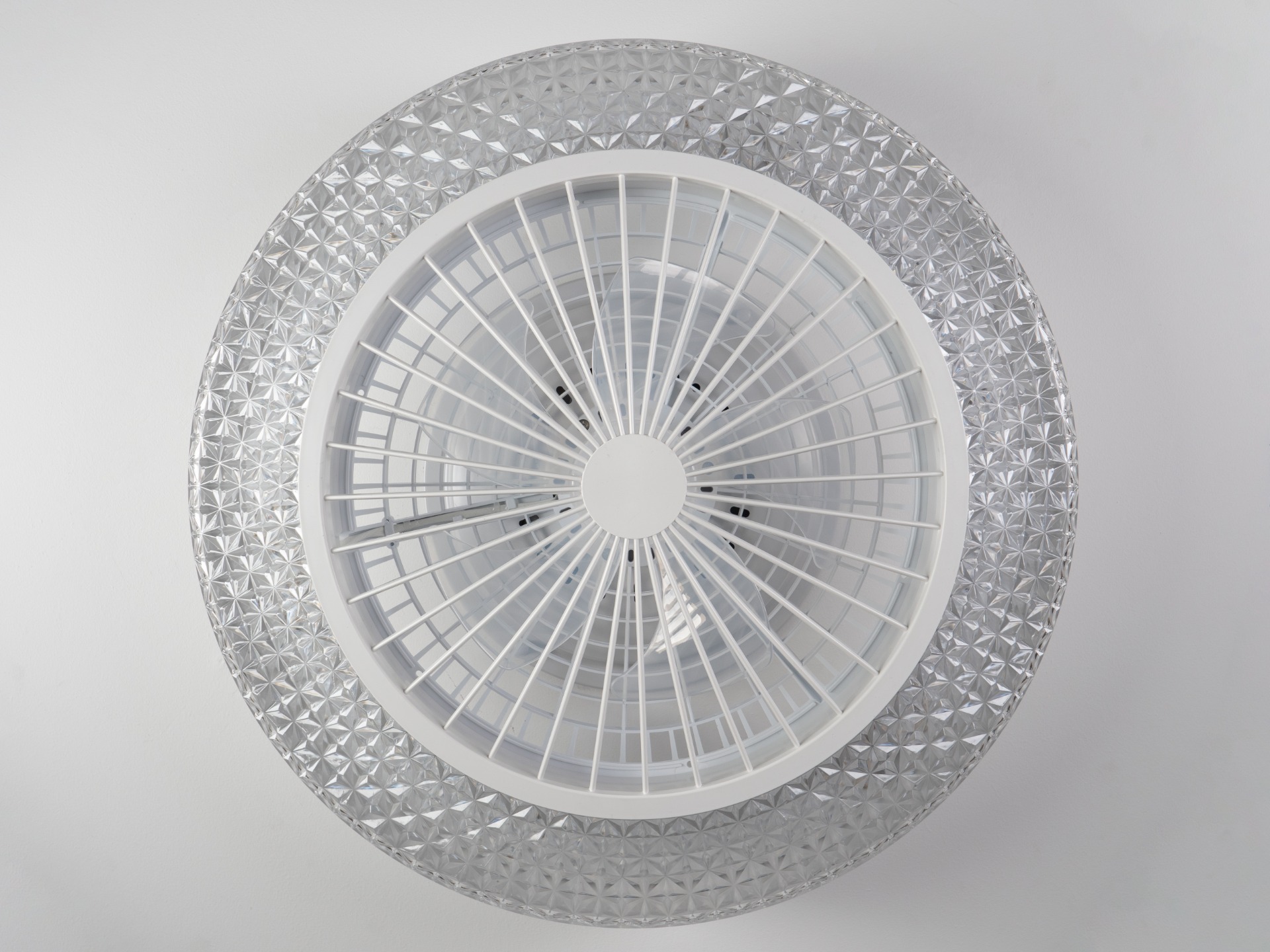 Een moderne plafondventilator zonder al te veel poespas. Het witte design zorgt dat de ventilatorlamp bijna in elk interieur wel past. Wat deze lamp nog iets leuker maakt is dat de ring een soort kristallook heeft. Hierdoor heeft de lamp een chique uitstraling. De lamp is instelbaar in warm wit licht en koelwitlicht (2700K-6500K), heeft 3 snelheden en is dimbaar. Dit alles stel je in met de meegeleverde afstandsbediening. Kortom een moderne plafonventilator, uitermate geschikt om de warme zomertijd door te komen, maar ook buiten de zomer een plaatje om te zien.