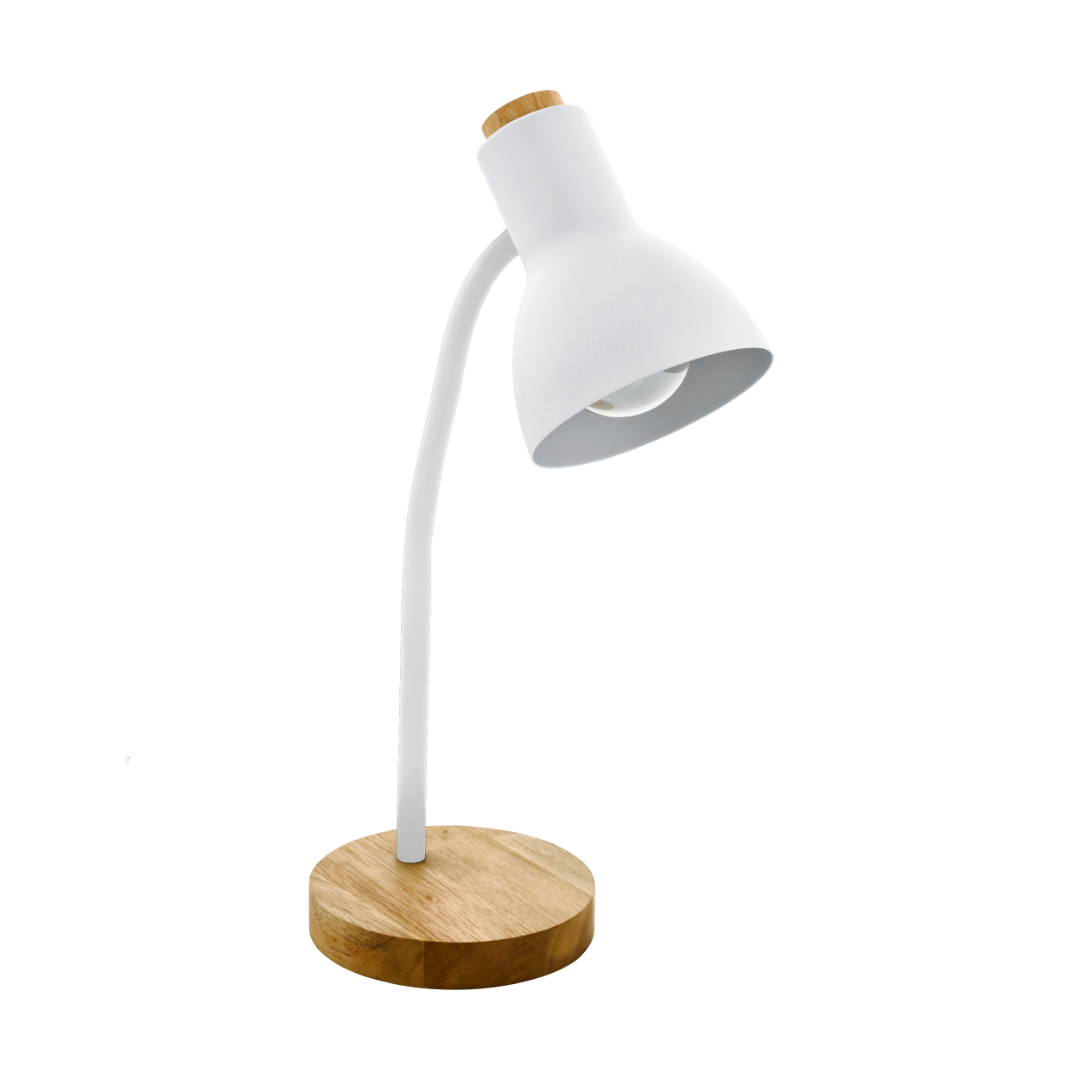 Een moderne tafellamp uit de tafellampen collectie van Eglo. Deze lamp is gemaakt van staal, hout en kunststof in de kleuren wit en bruin. De tafellamp met E27-fitting wordt exclusief lichtbron geleverd en is geschikt voor een maximaal wattage van 40W. Deze lamp staat goed in verschillende soorten interieur door de simplistische look. Deze lamp is een ideale aanvulling voor verschillende ruimtes zoals uw woonkamer of slaapkamer, bijvoorbeeld op een nachtkastje. Deze lamp heeft een handige snoerschakelaar.