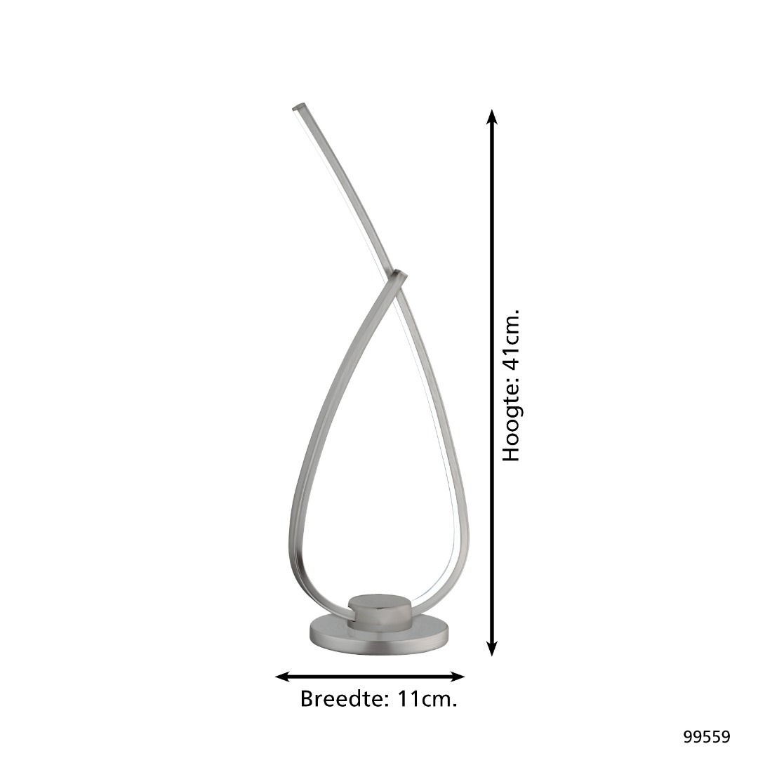 Een design tafellamp uit de tafellampen collectie van het merk Eglo. De lamp is gemaakt van aluminium en kunststof in de kleuren nikkel-mat en wit. De lamp wordt geleverd inclusief LED lichtbron met een wattage van 9,8W. Deze lamp kan goed geplaatst worden in de woonkamer of slaapkamer. Door de chique look kan deze lamp in veel soorten interieur mooi tot zijn recht komen. In het snoer zit een handige schakelaar verwerkt.