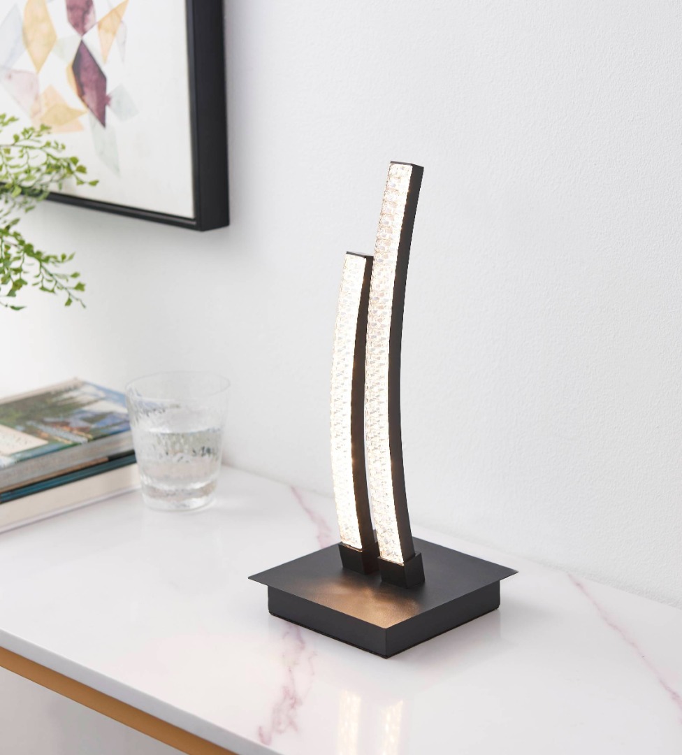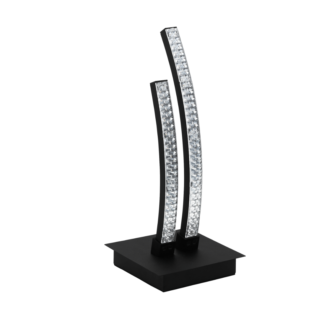 Een design tafellamp uit de tafellampen collectie van het merk Eglo. De lamp is gemaakt van staal en kunststof in de kleur zwart en transparant. De lamp wordt geleverd inclusief LED lichtbron met een wattage van 8W. Deze lamp kan goed geplaatst worden in de woonkamer of slaapkamer. Door de modern- neutrale uitstraling kan deze lamp in veel soorten interieur mooi tot zijn recht komen.