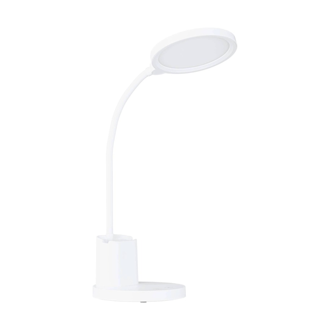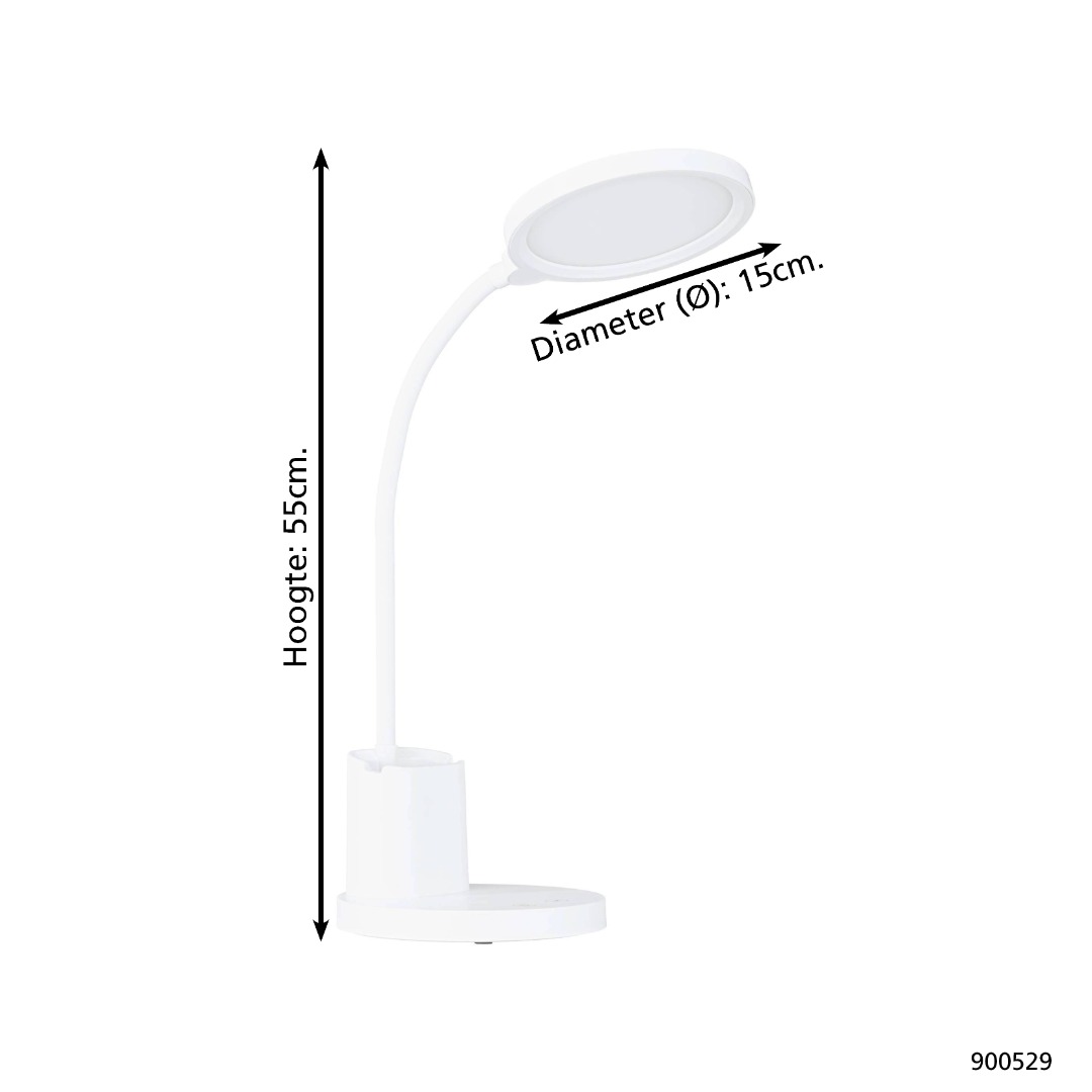 Een tafellamp uit de collectie van Eglo met een moderne uitstraling. De lamp is gemaakt van kunststof in een geheel witte kleur. Deze lamp kan goed worden geplaatst in de slaapkamer, woonkamer maar ook op kantoor. De lamp heeft een ingebouwde LED lichtbron met een wattage van 2,1W. De lamp heeft een aanraaksysteem waarmee de lichtkleur kan worden aangepast van koel- naar warmwit licht.
