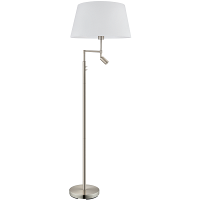 Deze moderne vloerlamp is onderdeel uit de lighting collectie van Eglo. De lamp is wit en nikkel van kleur en gemaakt van staal en textiel. De lichtbron wordt niet meegeleverd en de E27-fitting is geschikt voor een max. wattage van 25W. De Santander is goed te combineren bij verschillende interieur mogelijkheden. De lamp is een goed voorbeeld van een lamp die mooi staat in de woonkamer of op kantoor. Bij de lamp zit ook een handig LED lampje.