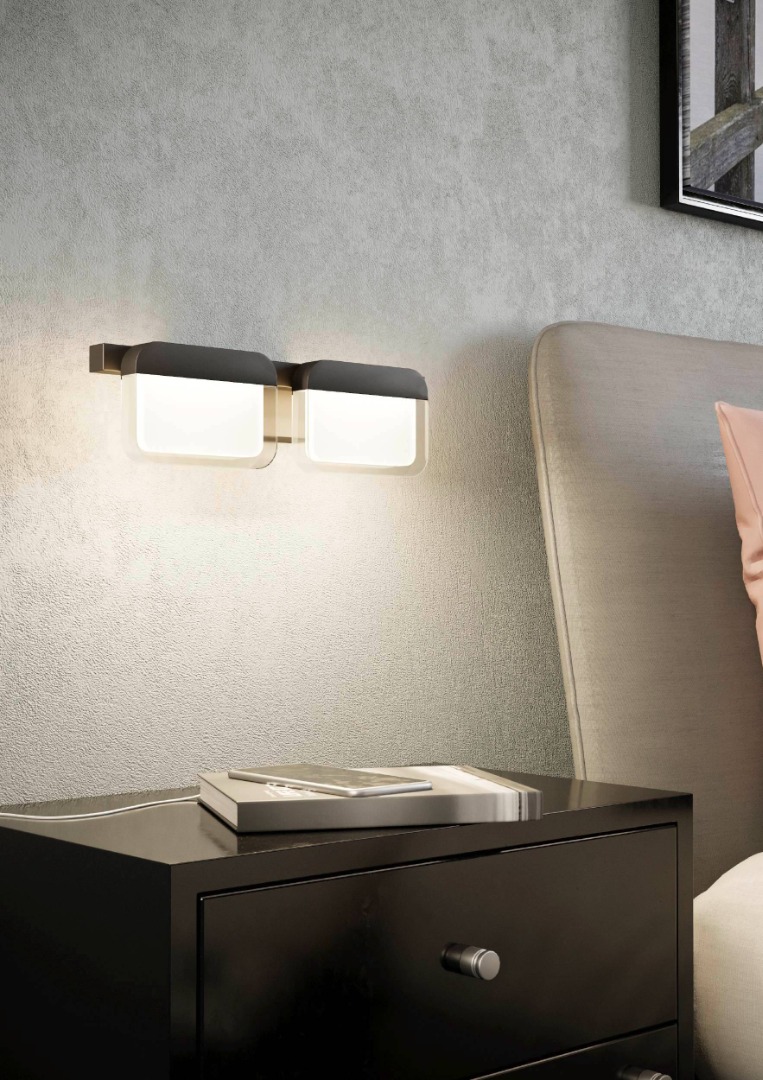 Een design wandlamp uit de wandlampen collectie van het merk Eglo. De lamp is gemaakt van staal en kunststof in de kleuren zwart, helder en gesatineerd. De lamp wordt geleverd inclusief 2 LED lichtbronnen met een wattage van 2x 4,5W. Deze lamp kan goed geplaatst worden in de hal, woonkamer of slaapkamer. Door de chique monotone kleuren kan deze lamp in veel soorten interieur mooi tot zijn recht komen.