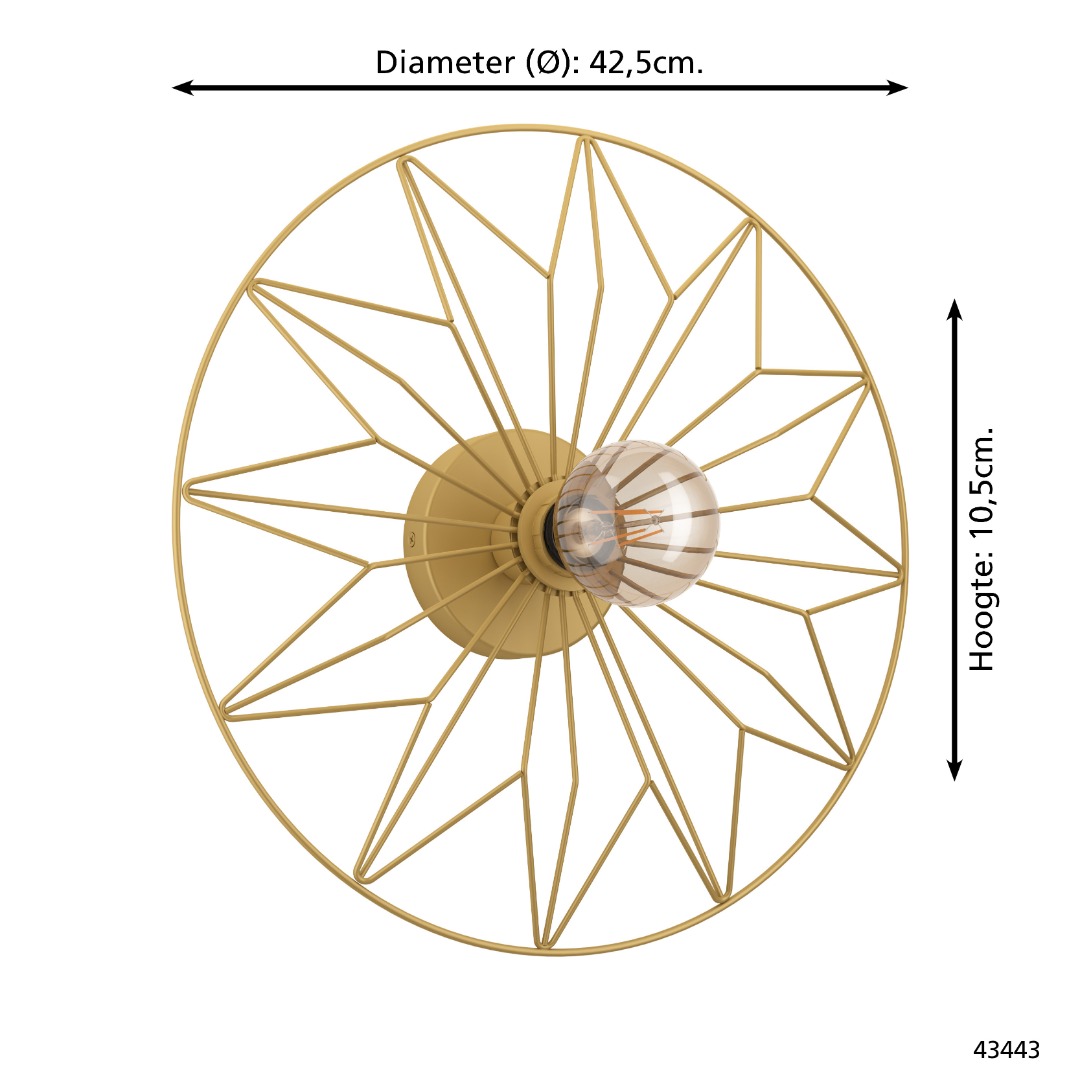 Een prachtige lamp uit de wandlampen collectie van Eglo. De lamp heeft een vintage achtige uitstraling maar kan ook goed worden toegepast in een modern interieur of zelfs een bohemian/beach achtige stijl. De lamp kan goed worden geplaatst in zowel de hal, woonkamer of slaapkamer. Ook kan de lamp eventueel als plafondlamp worden gebruikt. De lamp wordt geleverd exclusief lichtbron met een E27 fitting en geschikt voor max. 40W. De lamp is gemaakt van staal en heeft een goudkleur.