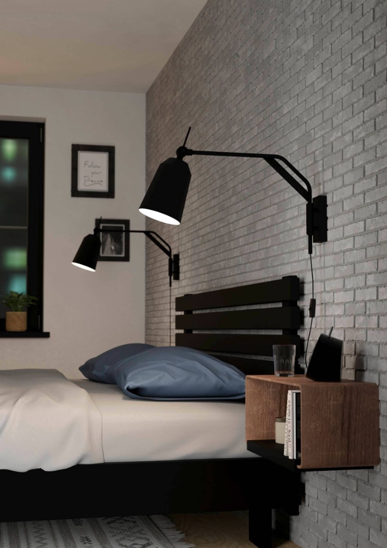 Een wandlamp uit de collectie van Eglo met een moderne uitstraling.  Deze wandlamp is gemaakt van staal en heeft de kleur zwart, met een witte binnenkant van de kap. Deze lamp staat prachtig in de hal, woonkamer of slaapkamer. De lamp heeft een E27 fitting, wordt zonder lichtbron geleverd en is geschikt voor een wattage van max. 40W.