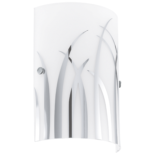 Een wandarmatuur uit de wandlampencollectie van Eglo. De behuizing van de Rivato 92742 is gemaakt van staal en uitgevoerd in de kleuren wit en chroom. De lampenkap is wit gelakt glas en heeft een motief van chroom. De lamp heeft een E14-fitting met een maximaal wattage van 42W en wordt zonder lichtbron geleverd. Deze lamp kan door het hele huis gebruikt worden, zoals in de woonkamer of gang.