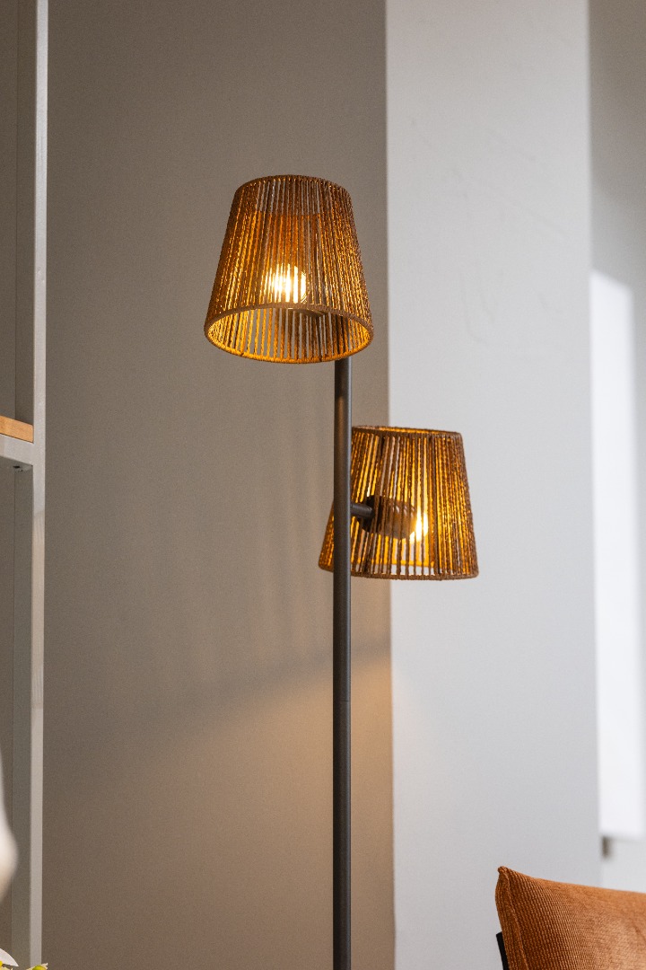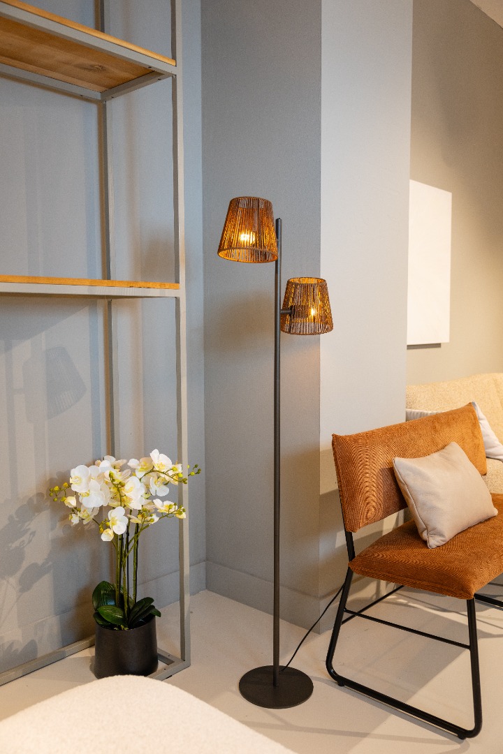 Deze Daan vloerlampen is één van de pronkstukken uit de Daan collectie. Deze collectie omvat een tafel- en twee vloerlampen die prachtig met elkaar gecombineerd kunnen worden. De kleur van deze lamp is Anodic Brown en is een soort prachtig, metallic donkerbruine kleur die zeker de show zal stelen. Het kapje van de lamp maakt met zijn unieke stijl de lamp helemaal af. Bovenop de stang zit een aan/-uitschakelaar waarmee je de lampen eenvoudig (niet afzonderlijk) kunt bedienen. Er zitten 2x E27 fitting op de lamp geschikt voor ieder 15W.
