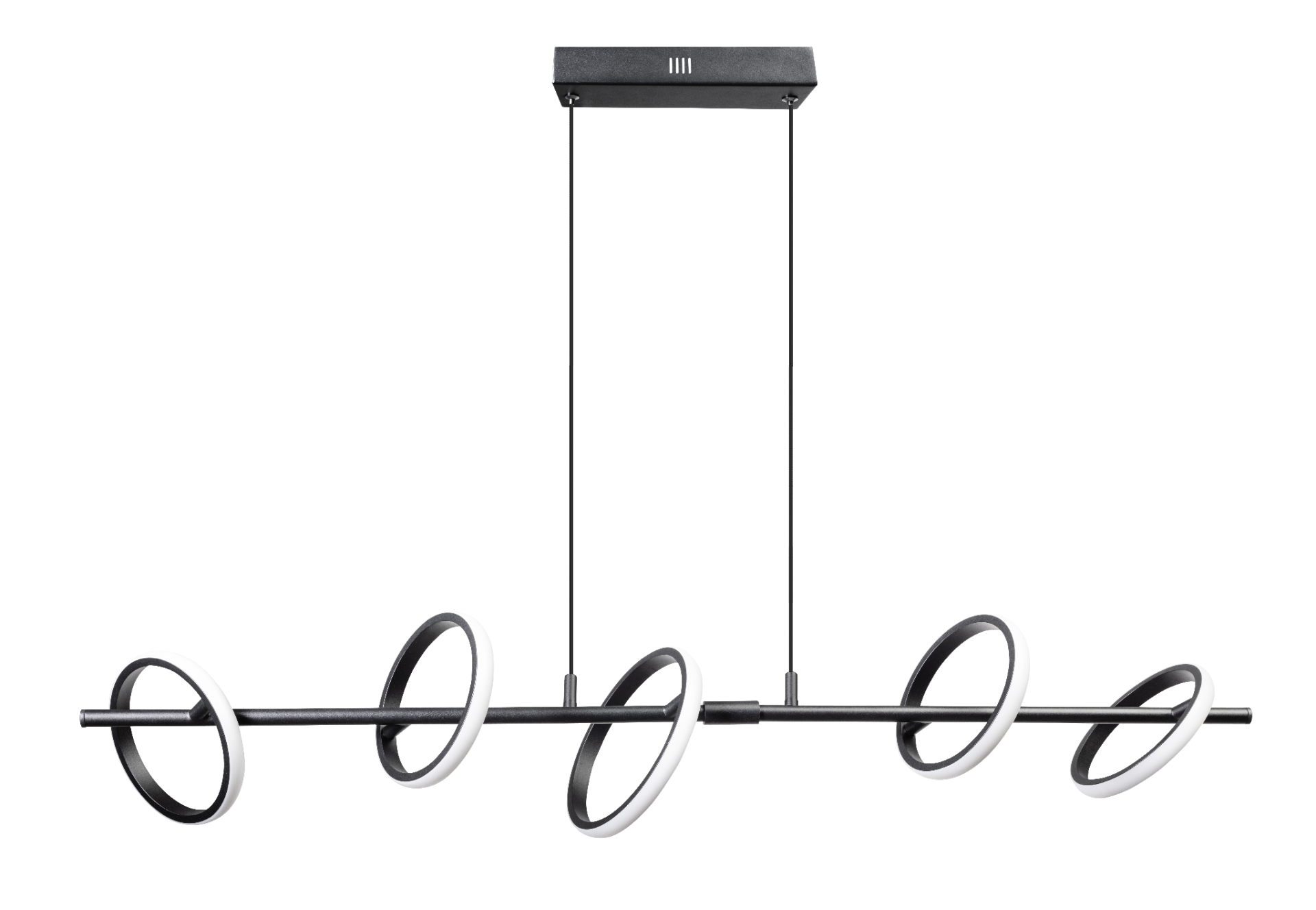 Hoe leuk is deze hanglmp uit de Jaimy collectie. De lamp heeft 5 ringen met geïntegreerde ledstrips die wel lijken te zweven om de stang heen. Heel erg gaaf om in huis te hebben. Ook leuk om te combineren met de andere lampen uit de Jaimy collectie. Iedere ring heeft dus een geïntegreerde ledstrip van 6W. Bovendien is de lamp te dimmen middels een externe dimmer. Zo pas je het licht aan als je iets meer of minder licht nodig hebt. Door zijn lengte past deze lamp ideaal boven uw eettafel.