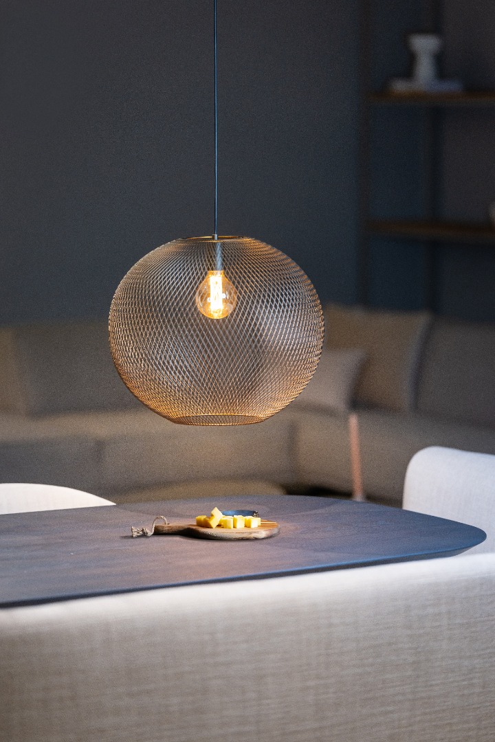 Deze Billie hanglamp uit de collectie van ETH heeft naast een prachtig design ook nog eens een prachtige kleur. Het armatuur heeft namelijk een anodic brown kleur en dat is een soort metallic goudbruine kleur en zal dus zeker de show stelen. Daarnaast zorgt het rasterdesign ook nog eens voor mooie lichteffecten. Kortom, deze lamp wil je toch in huis hebben? Er zit een E27 fitting in geschikt voor een lichtbron tot max. 15W. De Billie hanglamp is in 3 diameters verkrijgbaar en het betreft hier de middelste variant van 40 cm.
