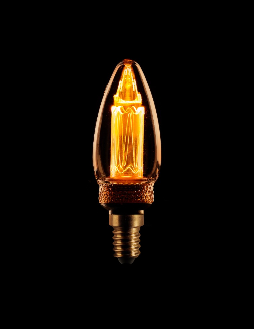Een ledlamp uit de ETH collectie. Deze kaars lamp mag door zijn uiterlijk zeker gezien worden en is daarom erg leuk in open armaturen. De lamp heeft een prachtig goud getint glas en een verticale kooldraad spiraal en geeft hierdoor mooi zeer warm wit licht af. De lamp heeft een vermogen van 2,3W en is dimbaar.