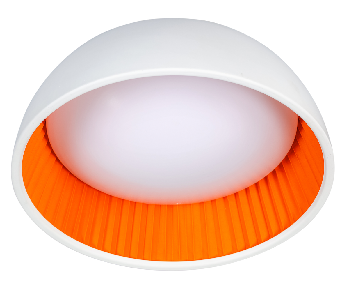Een moderne plafondlamp uit de Ringo collectie van ETH. De lamp heeft een uitneembare colorring. Het oranje gedeelte kunt u dus uit de lamp halen en dan is de lamp geheel wit. Daarnaast beschikt de lamp ook over 3 staps dimtechniek, dit houdt in dat u de lamp kunt dimmen in 3 standen door middel van de wandschakelaar. Met een diameteer van 49 cm is deze lamp ideaal geschikt om bijvoorbeeld in uw woonkamer of slaapkamer te hangen.
