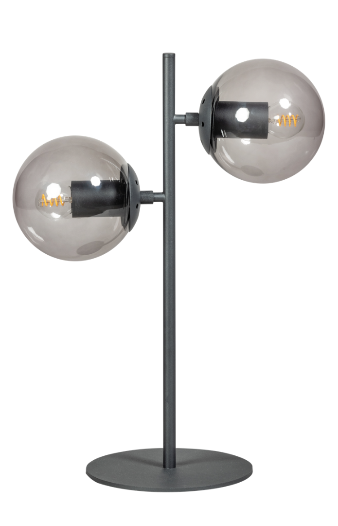 Een prachtige tafellamp uit de Davina collectie van ETH. Zal erg mooi staan in uw woonkamer of op het nachtkastje naast het bed. De mooie smokey bollen geven de lamp een industriële en moderne tint. Combineer met de andere lampen uit de Davina collectie om een mooi geheel te creëren. De lamp heeft 2 E27 fittingen, ieder geschikt voor max. 40W.