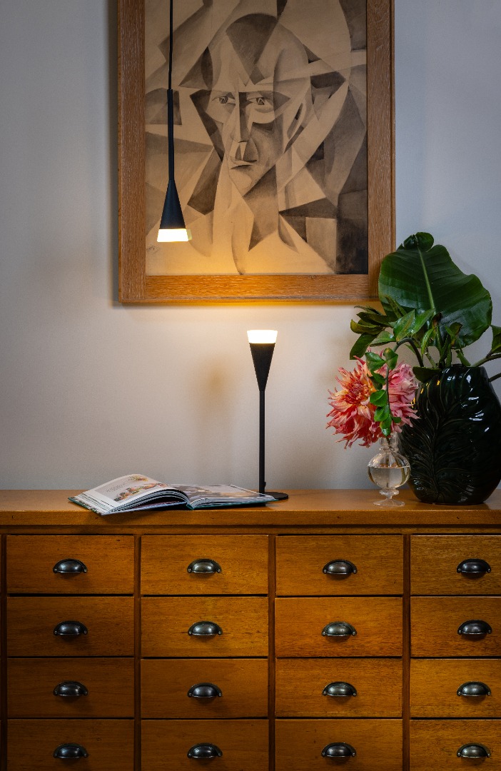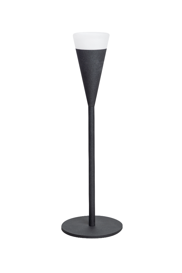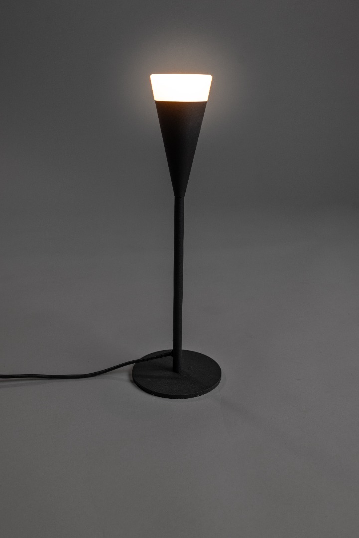 Een moderne tafellamp in een mat zwarte kleur en een subtiele touch van licht. De lamp lijkt een soort toorts en schijnt mooi licht rondom verspreid. De lamp heeft een GU10 fitting geschikt voor een lichtbron van max. 5W. Erg leuk om te combineren met de andere lampen uit de Defender serie. Zo kun je één samenhangend geheel creëren wat je interieur naar the next level tilt.