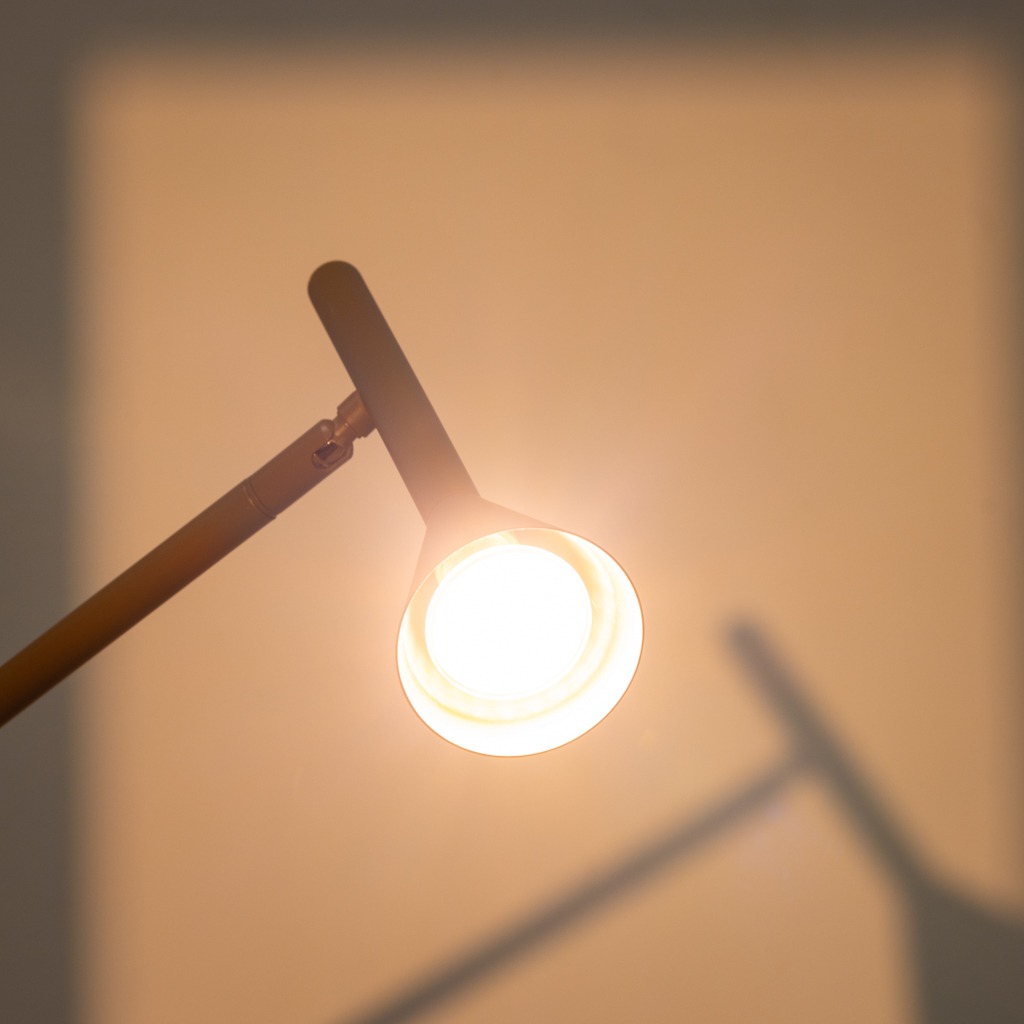 Een moderne vloerlamp in een prachtig taupe kleur. Deze lamp is geschikt voor iedereen die wat licht wil maar niet te veel poespas. Het zwarte, slimme design valt mooi weg in uw interieur. Je bedient de lamp eenvoudig door de schakelaar op het kapje. Het kapje kan je tevens nog richten in de gewenste richting. De lamp heeft een hoogte van 166 cm en past perfect in de woon- of slaapkamer of naast de bank of stoel om te gebruiken als leeslamp. Er zit een GU10 fitting in geschikt voor led lichtbronnen van max. 5W.