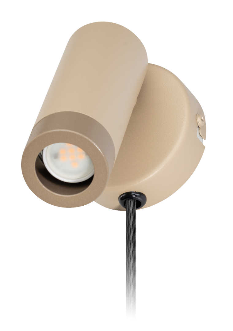 Een moderne wandlamp uit de Miller serie van ETH in een prachtige beige zandkleur. De lamp kan je op 3 mogelijkheden gebruiken om 3 verschillende looks te creëren. Je kan ervoor kiezen om gebruik te maken van de ringen, welke in zowel een zwarte als taupe kleur worden geleverd, of zonder ring en er een mooie zichbare lichtbron in te doen. Met één lamp kan je dus meerdere mogelijkheden op. Indien u gebruik maakt van de ringen, is hiervoor een speciale lichtbron van ETH, namelijk de Pucc. Dit is een soort kleine schijf (te zien op de foto) welke onder de ringen past. Deze wordt niet standaard meegeleverd, maar is bovenin wel extra bij te bestellen als keuzeoptie. Deze Pucc lamp is in 3 standen dimbaar door middel van de schakelaar welke op het snoer zit en is beschikbaar in verschillende lichtkleuren.
