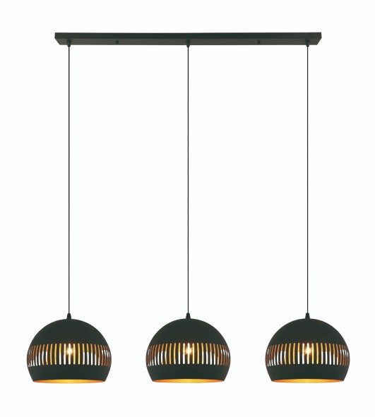 Deze Globo hanglamp van Freelight combineert een tijdloos zwart armatuur met aan de binnenkant een gouden coating. Mede hierdoor en de open spijltjes in de kap geeft de lamp daardoor een prachtig lichteffect af. De lamp heeft drie pendels die ieder een E27 fitting hebben geschikt voor een lichtbron tot max. 40W. De pendels kan je tijdens installatie inkorten tot de gewenste hoogte, zodat de lamp op de juiste lengte hangt. Door de lengte van de lamp is deze uitermate geschikt om bijvoorbeeld boven de eettafel te hangen.