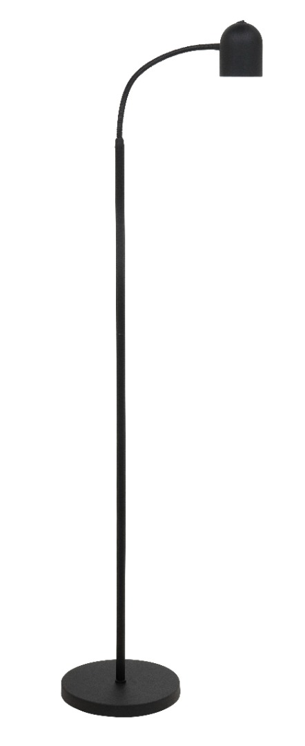 Een simplistiche en moderne vloerlamp. Simpel, maar zeker niet te missen in uw interieur. De lamp heeft een prachtige zwarte kleur en doordat de bovenkant van de stang flexibel is, kan je deze naar wens buigen. De lamp wordt geleverd met led lichtbron van 5W, welke niet dimbaar is. Bovenop het kapje zit een handige aan/uitschakelaar waarmee je de lamp kunt bedienen.