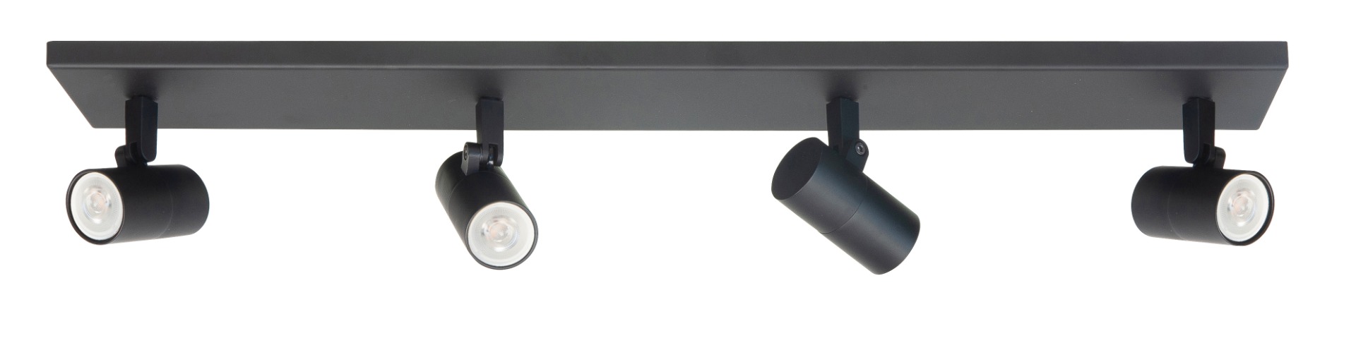 Een mooie opbouwspot van Highlight in een matzwarte kleur. Door het ontwerp en de kleur past deze spot eigenlijk wel in elk interieur. Binnen de Piccolo serie zijn ook nog andere spots beschikbaar, leuk om met elkaar te combineren. Het betreft hier een 4-lichtsspot op een rechthoekige balk. De spot is kantelbaar en hierdoor kan u een beetje de richting bepalen waar het licht heen zal schijnen. De lichtbron wordt niet meegeleverd en er zit 4x een mini GU10 fitting in geschikt voor een ledlichtbron van max. 3,5W.