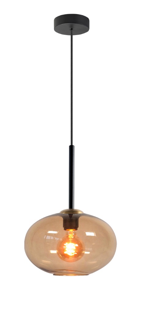 Hoe mooi is deze hanglamp Bellini van Highlight? De lamp verspreid prachtig licht en heeft een open onderkant. Het armatuur is gemaakt van een zwarte kleur en gecombineerd met het bruine glas steekt dit mooi van elkaar af. Als finishing touch wordt het glas vastgehouden door een gouden plaat, dit geeft de lamp net dat beetje extra. Deze hanglamp is ook beschikbaar met andere vorm glazen, leuk om bijvoorbeeld met elkaar te combineren alsmede met de andere lampen uit de Bellini serie. Er zit een E27 fitting in de lamp geschikt voor max. 9W en de lichtbron wordt niet meegeleverd. Zo kunt u zelf kiezen voor de gewenste vorm en lichtopbrengst.