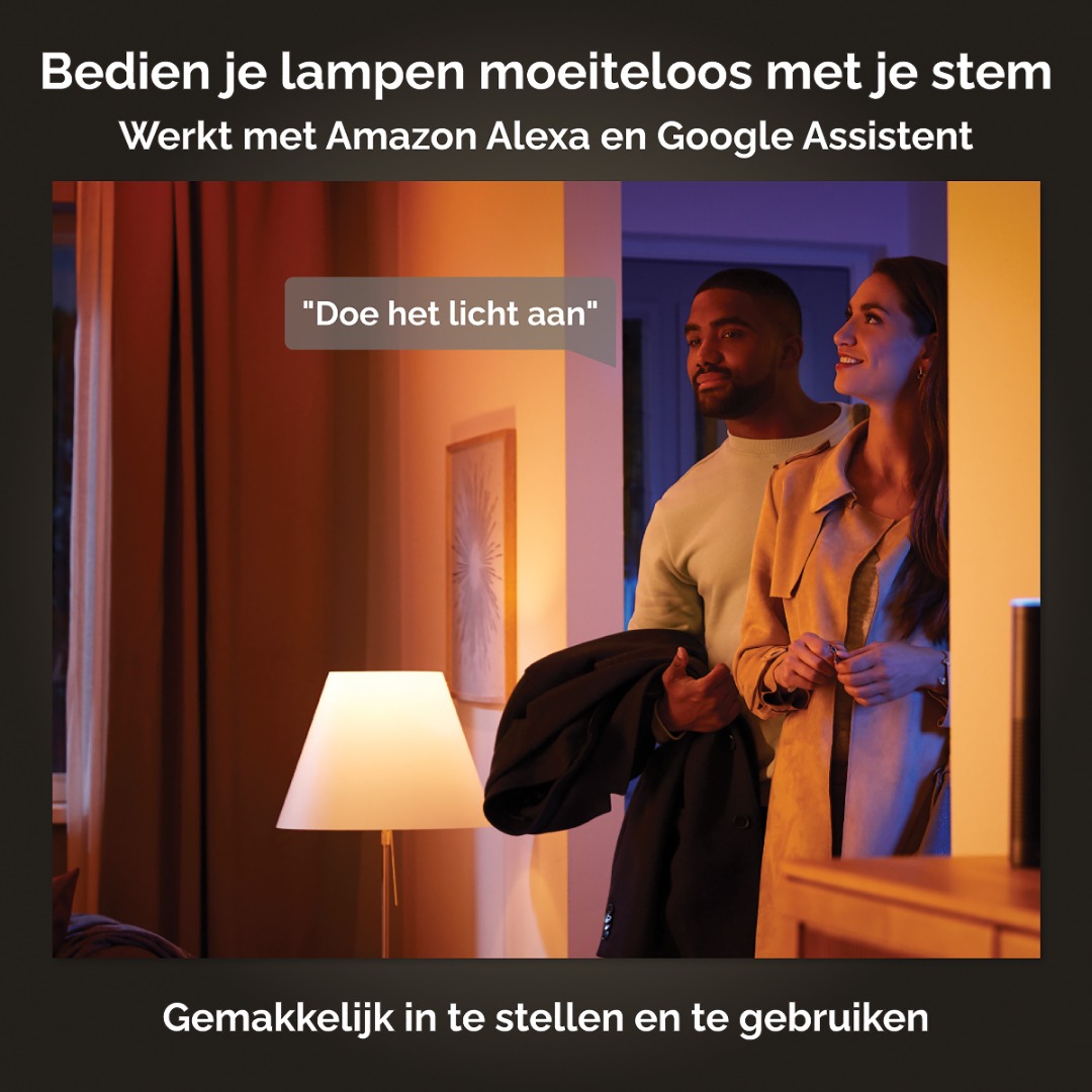 Met Philips Hue bepaal jij zelf welke sfeer je in huis wil hebben. Precies goed. Zonder kabels, een elektricien of installatiewerk, de lampen kunnen direct gedimd worden. Philips Hue biedt drie typen slimme lampen die in verschillende vormen, afmetingen en modellen worden geleverd. Kies Hue white voor eenvoudige bediening en comfort, Hue white ambiance voor ontspannend warmwit licht tot koel daglicht om je dagelijkse activiteiten te ondersteunen of Hue white and color ambiance voor een meeslepende ervaring. Ze werken allemaal samen om je woning slimmer, comfortabeler en energiezuiniger te maken.
