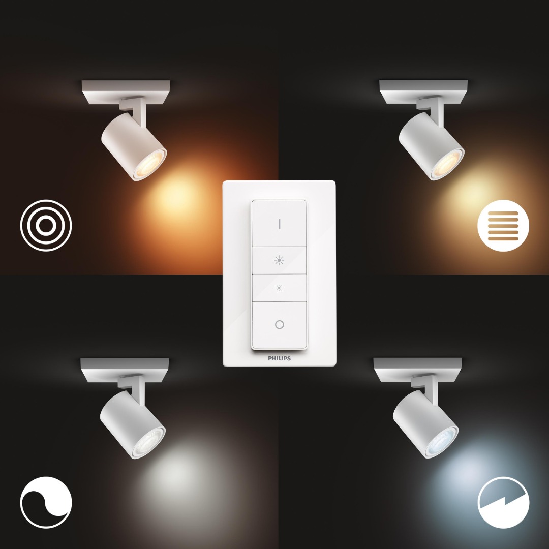 Deze Philips Opbouwspot Runner komt uit de myLiving serie en wordt geleverd met Hue GU10 lichtbron en Hue Dimmer Switch. Hiermee dimt u de spot gemakkelijk om de juiste sfeer te creëeren. Het Hue systeem is makkelijk te installeren zonder ingewikkeld installatiewerk. Het is mogelijk om meerdere Hue lampen aan één dimmer te koppelen. De spot is gemaakt van hoogwaardig materiaal met een eenvoudige uitstraling waardoor het in elk interieur past. Deze spot beschikt ook over Bluetooth en hiermee kunt u de spot ook bedienen via de Bluetooth app op uw telefoon of tablet. Wil je genieten van de maximale mogelijkheden van Hue, zoals het personaliseren van lichtscènes, routines en timers? Verbind de lamp dan met de apart verkrijgbare Philips Hue Bridge.