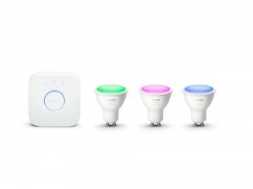• Starterskit inclusief 3x Hue lamp, 1x bridge en 1x Hue dimmer