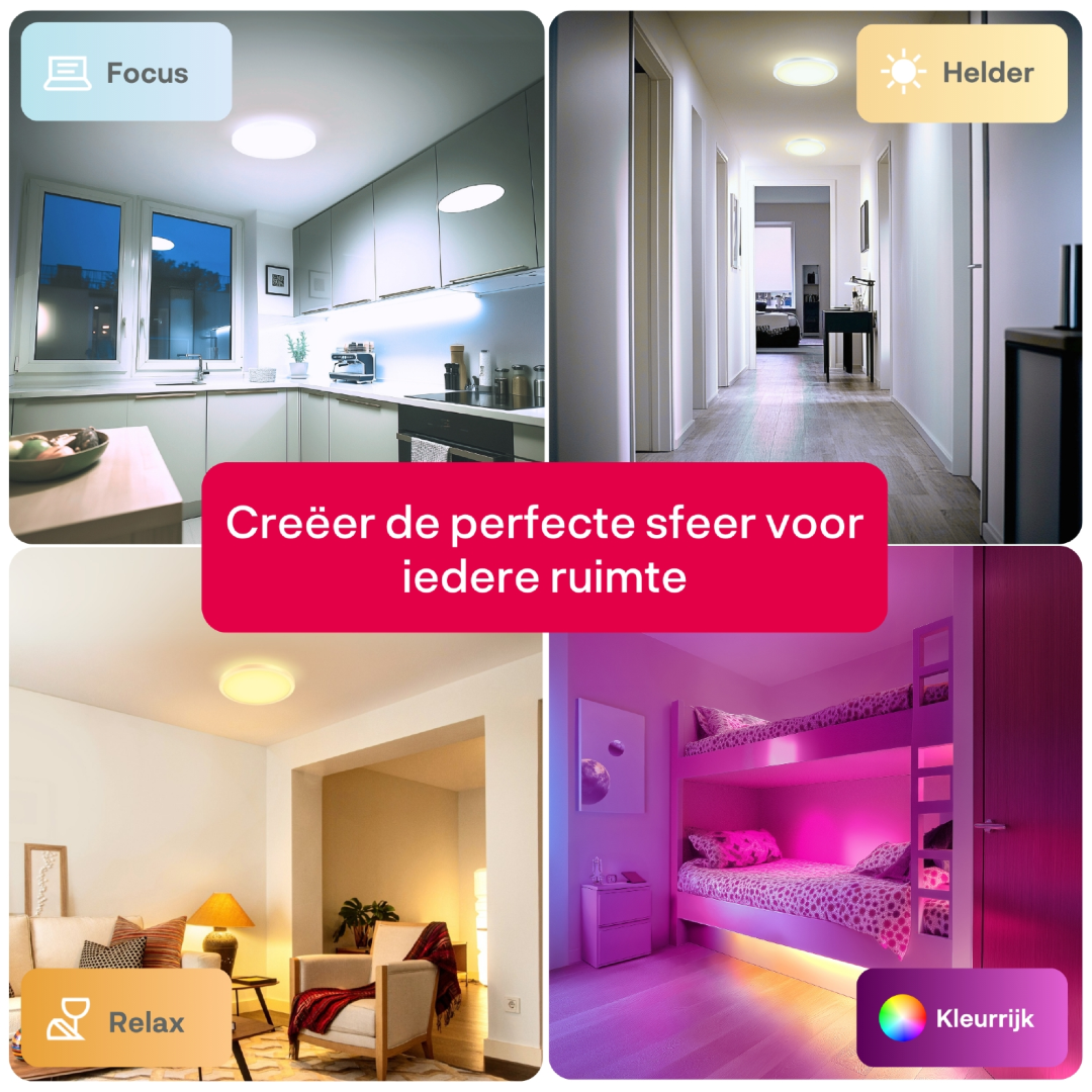 Een mooie, moderne plafondlamp uit de Innr collectie. De lamp heeft Color licht welke je in kan stellen tussen de 1800K-6500K alsmede de miljoenen kleuren tinten. Zo kan je zelf de juiste sfeer bepalen voor het juiste moment. De lamp werkt op Zigbee en sluit je eenvoudig op je bestaande Zigbee systeem aan (Zigbee Bridge is vereist). Werkt dus ook samen met je Philips Hue systeem. De plafondlamp heeft een diameter van 30 cm en is een verrijking van je Smart Home systeem.