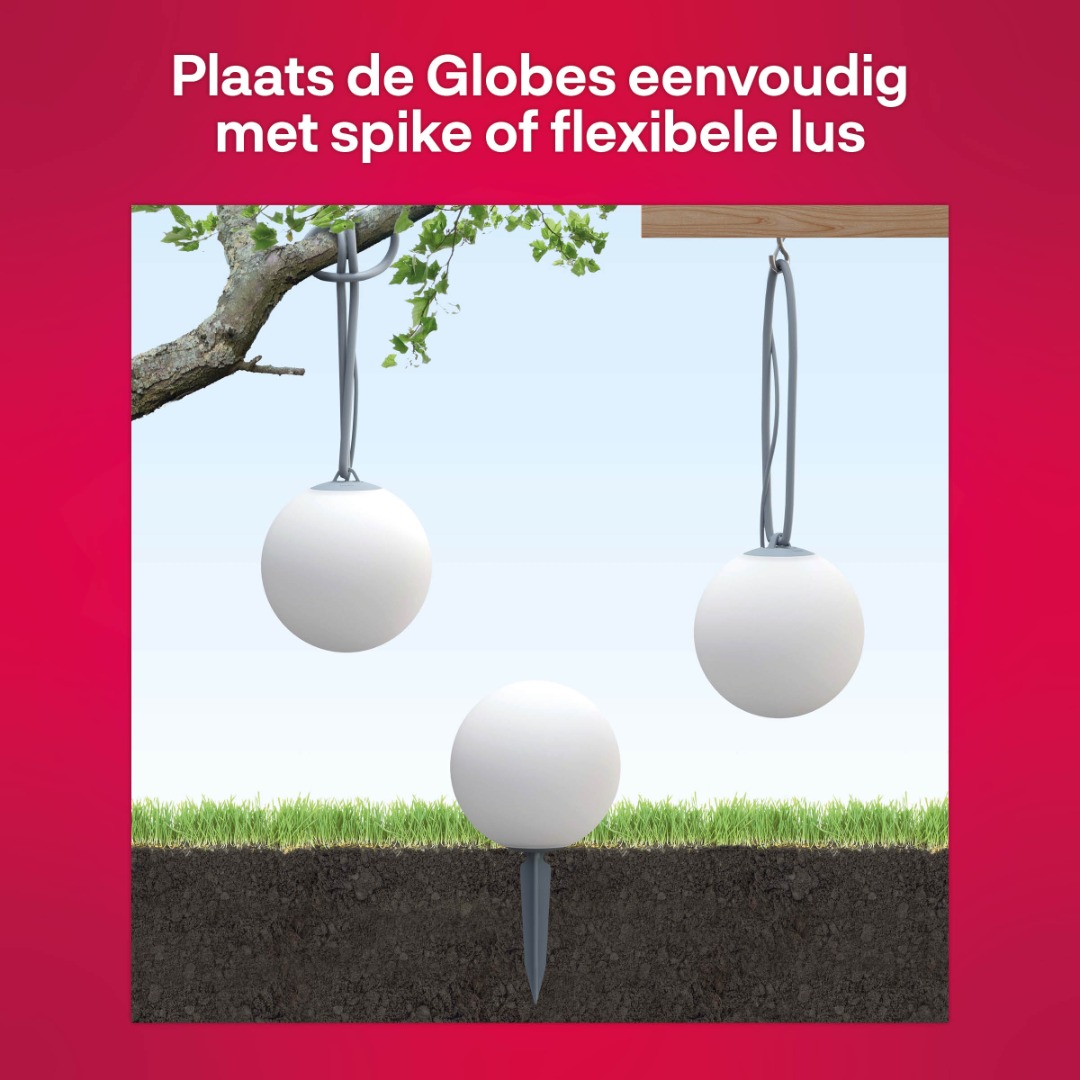 Hoe leuk zijn deze bollen van Innr! Doordat zowel de grondpinnen als lussen erbij zit, kan je de lampen ophangen of in de grond steken. Kies wat je zelf het leukste vindt en laat die gezellige zomeravonden maar beginnen. Kies voor warm sfeervol wit licht of maak er echt een feestje van met de miljoenen kleuren waaruit je kunt kiezen. Het betreft hier een startersset met 3 bollen, welke met een losse uitbreidingsset nog is uit te breiden naar in totaal 5 bollen. Schaf een Zigbee Bridge aan om van de tal van mogelijkheden gebruik te maken. De ballen hebben een diameter van 19 cm.